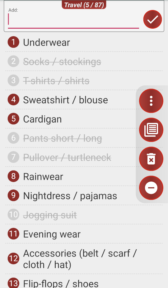Similar to the shopping list, only here the entries are numbered instead of the product images.
