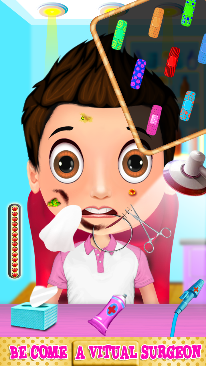 Be the best little skin doctor of all time and cure patients to make them smile and stay beautiful again. Pimples are the common rival of beauty & Don't Scratch or Pop it. A lot of pimples break out on the face, what should we do Little Doctor to get rid of these without pain? You are in the right clinic, as this Little Doctor is best on the all. Little girl just got hit by bike on way to home and got wounds all over her face. Wash and clean her face, wipe her tears, give her magical Skin surgery treatment by removing pimples and germs, cleaning wound, stitching. After one week care, give Lazer Skin Plastic Surgery to remove the wound marks completely. How beautiful and thankful the girl is NOW! And there one little boy who even broke his Nose!!!??? How you gonna fix that? He is crying like a little newborn baby. Treat them all who have skin problems, and do examination for them. This simulation will teach you how to keep your skin beautiful and deal with all kinds of skin problems!