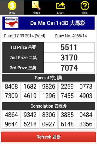 New Version with reduced file size and faster loading. This is the best Malaysia 4D app around! Testimonial from user:- =================================== Dannysang. Yangdanny August 31, 2016 Fantastic as spd booster! Albert Alakeesan August 12, 2016 4d Nic3 n superb Cannny Lim June 8 2016 Good apps =========================== Features: + Small & lightweight (and free!) + FASTEST results + FREE live draw result notifications + We support *all* draw results from - Magnum 4D, - Sport Toto 4D / 5D / 6D / Jackpot, - Damacai 1+3D/6D, - Singapore 4D / Toto, - Sabah 3D / 4D / Lotto 88 - Sandakan 4D, - Sarawak Cash Sweep SUPPORT ALL DEVICES inclusive of Tablet HD.