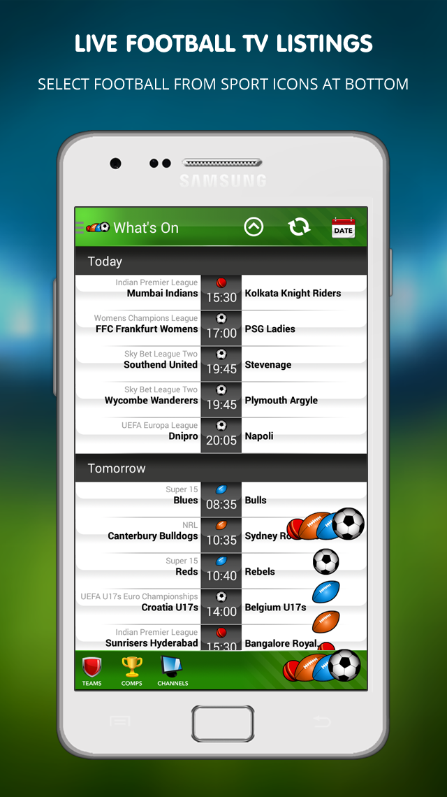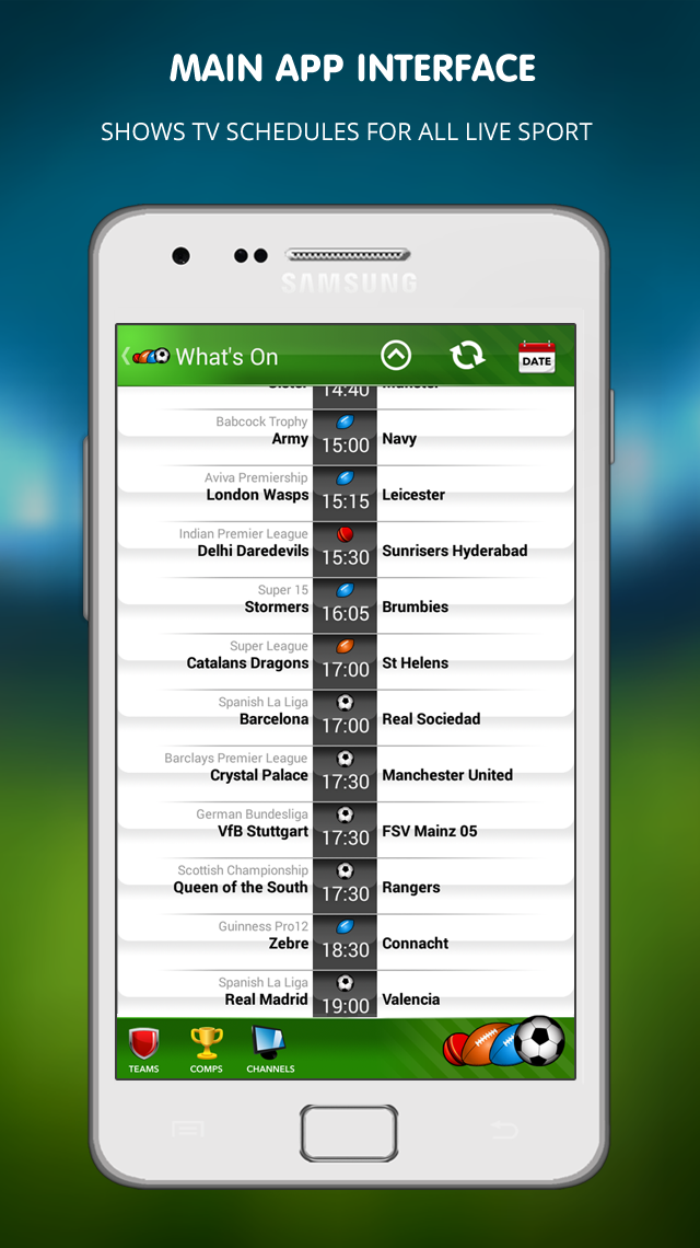 In addition to having access to all of the Live Football on TV, our amazing App also gives you an EXTRA BONUS! We cover the TV Schedules from the three other major sports in the UK – Rugby Union, Rugby League & Cricket, including competitions such as: