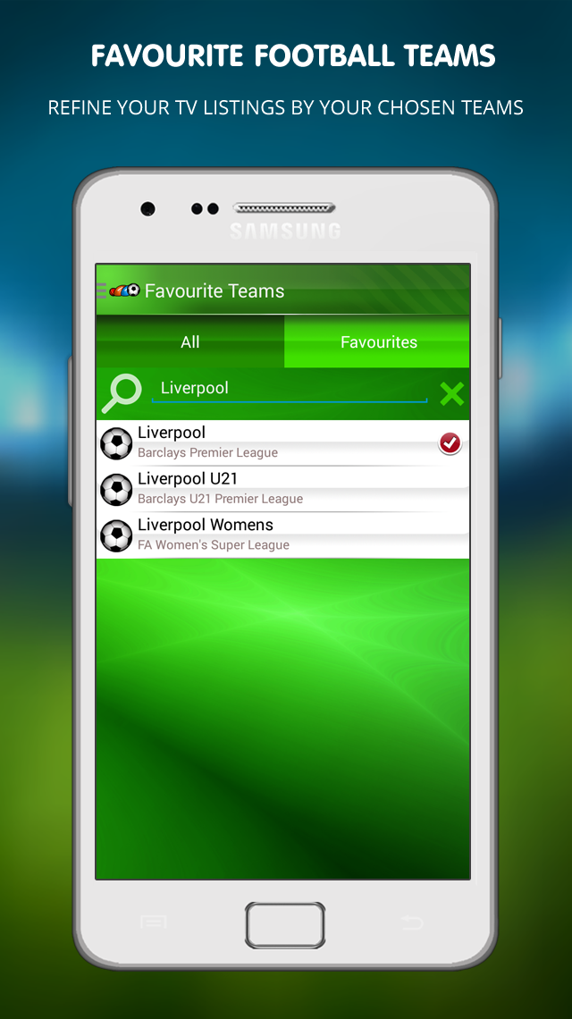 - Create your Favourite Football Teams, Competitions and TV Channels to refine your TV Guide to what’s important to you.