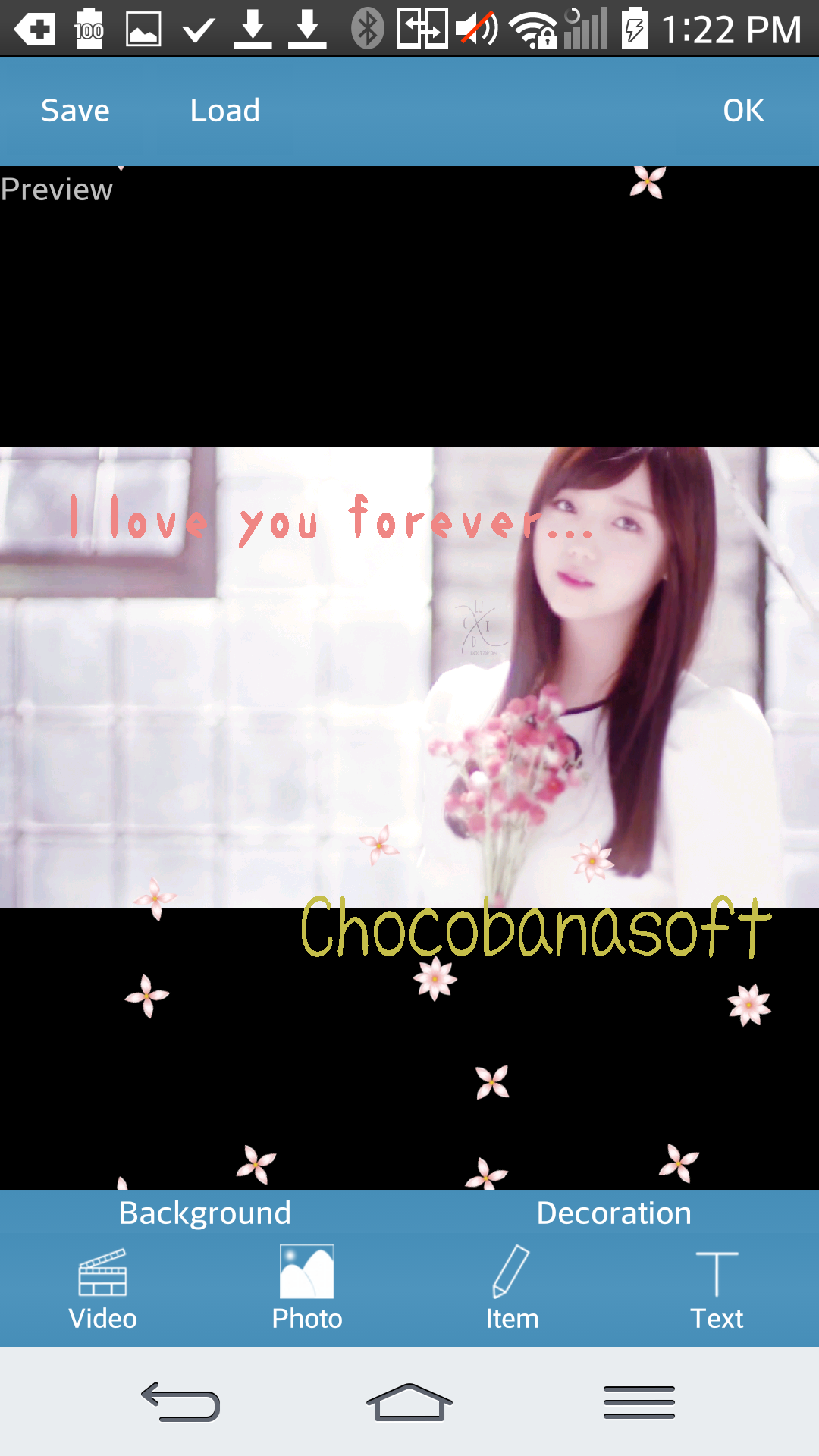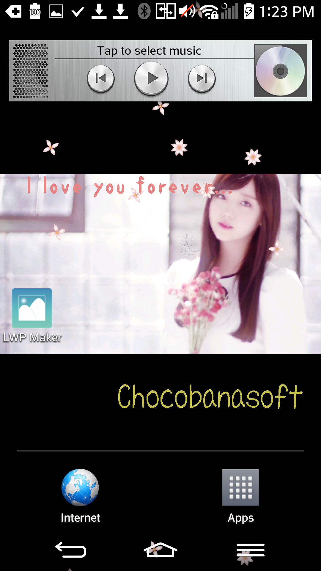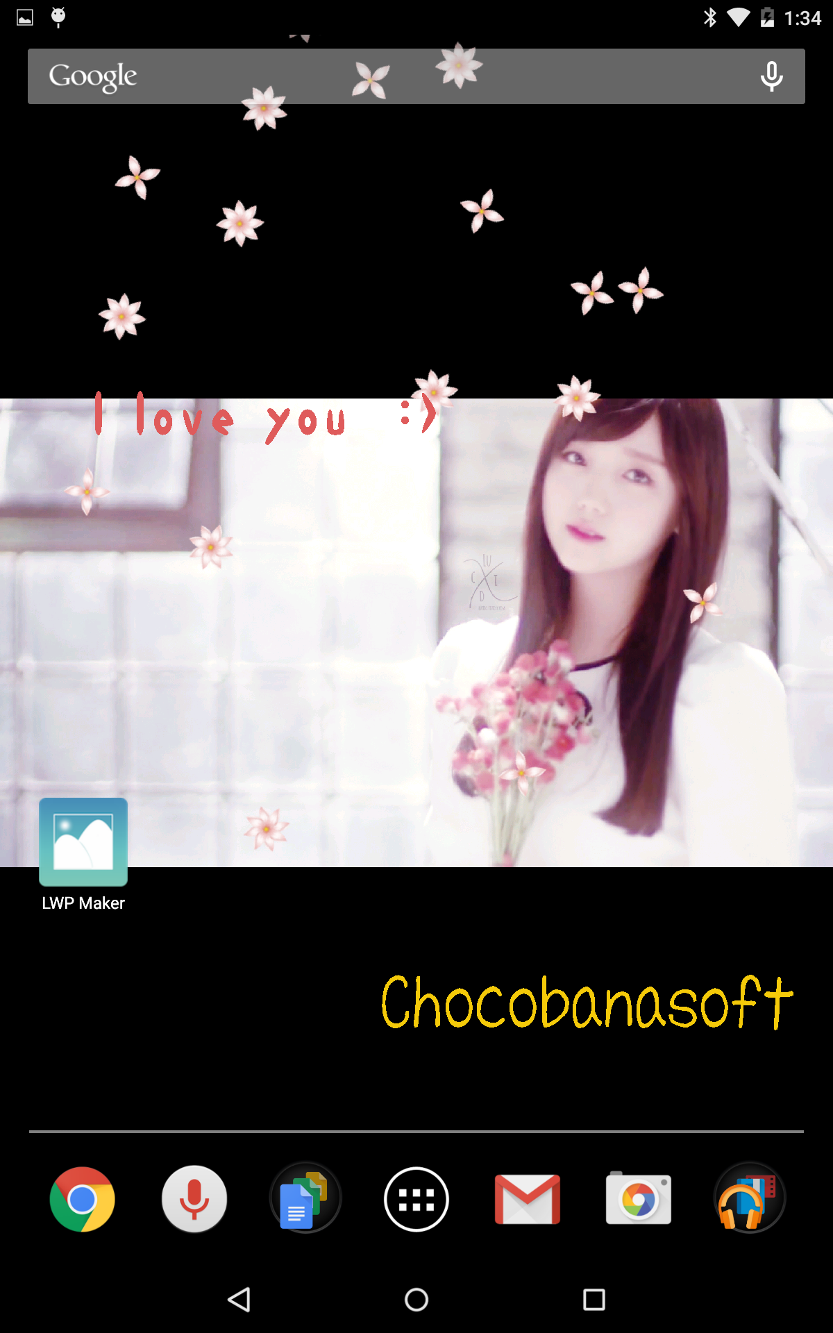 Get fancy mobile phone by creating your own Live Wallpaper!! Do you want to design your phone with vividly animated wallpaper instead of fixed and boring screen? Do you want to put moving images of your friends or favorite celebrity on your screen? Haven’t you found your favorite wallpaper yet? Here is “Live Wallpaper Maker®”. With “Live Wallpaper Maker®”, you can make your phone gorgeous. Live Wallpaper Maker provides you the power to customize your wallpaper by video clips, animated pictures (.gif), images, pretty items, and nice words. Key Features: 1. Wallpaper settings 1.1 Video setting 1.2 Animated image (.gif) setting 1.3 Photo setting 2. Decorating 2.1 Adding items (cherry blossom, snow, heartshape, etc.) 2.2 Adding your own favorite words Descriptions: 1.1 Video setting - Import and edit video clips - Adjust the position and playback speed. ※ Processing high quality video can take a long time. 1.2 Animated image (.gif) setting - Apply animated images (.gif) on the background ※ Processing high quality image can take a long time. 1.3 photo setting - Import and apply multiple photos on the background from your photo album. - Custom transition time, transition effect, size, etc. 2.1 Adding items - Create Live Wallpaper by adding moving items (cherry blossom, snow, heartshape, etc.) on the moving background. 2.2 Adding text - Add your own favorite words. - Customize the font size, color, position, direction of movement, etc. Make your own unique and fantastic wallpapers with “Live Wallpaper Maker®”!!!