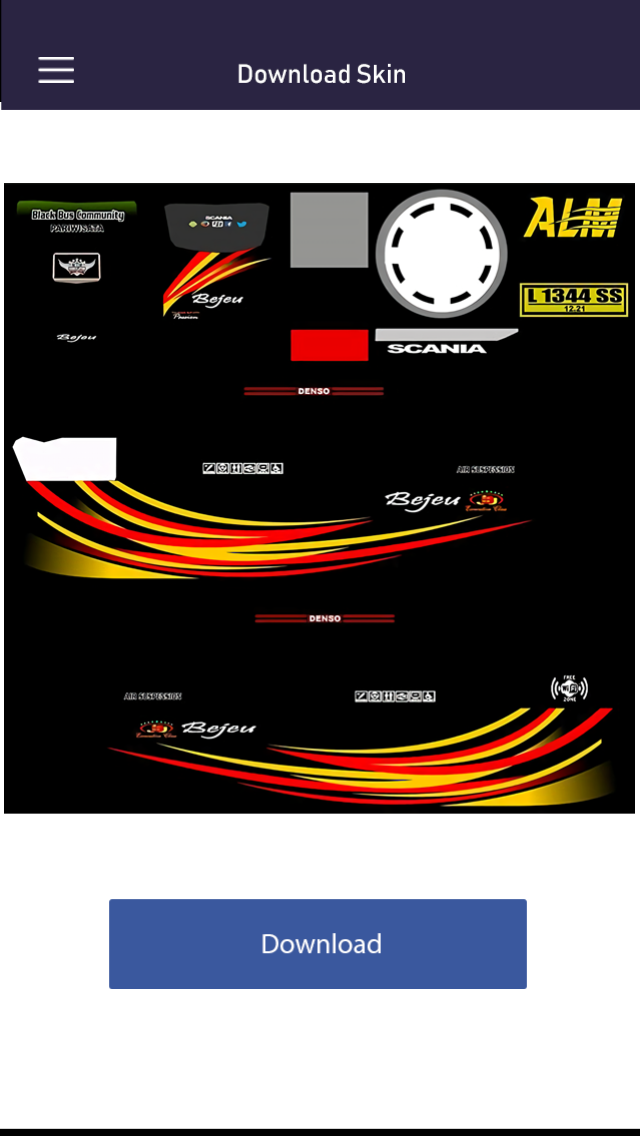 Livery Bussid Bejeu (Package Name: com.livery.bussidbejeu) is developed by Top Skin and the latest version of Livery Bussid Bejeu 1 was updated on February 8, 2018. Livery Bussid Bejeu is in the category of Entertainment with the feature Tools. You can check all apps from the developer of Livery Bussid Bejeu. Currently this app is for free. This app can be downloaded on Android 3.0+ on APKFab or Google Play. All APK/XAPK files on APKFab.com are original and 100% safe with fast download.