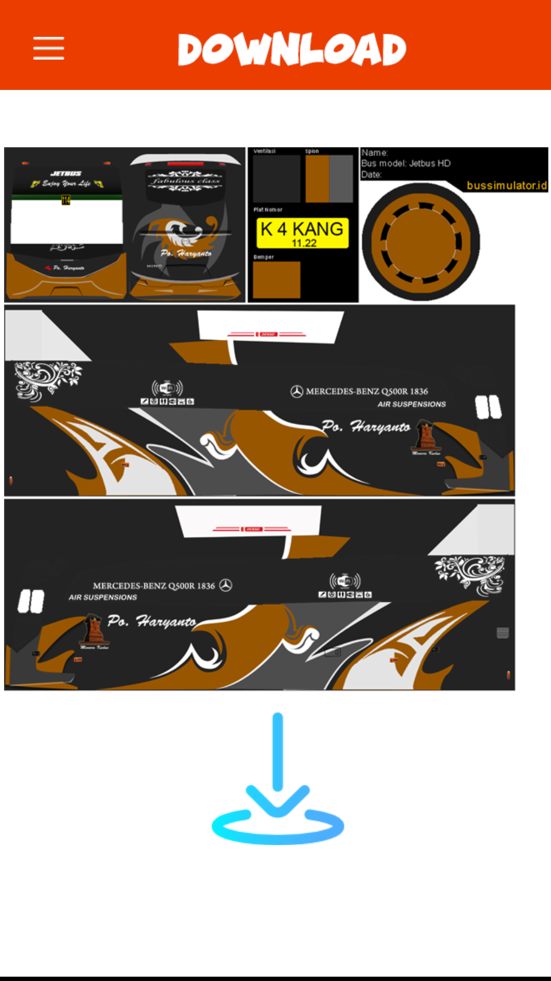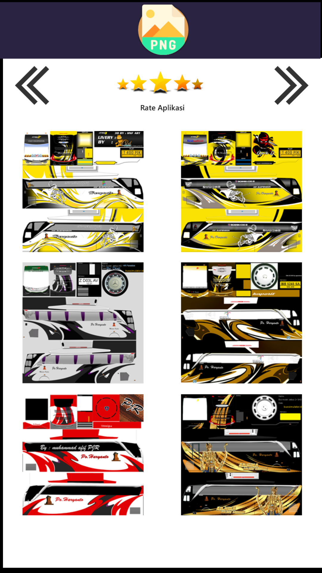Livery Bussid Hariyanto (Package Name: com.luxurylivery.hariyanto) is developed by Luxury Livery and the latest version of Livery Bussid Hariyanto 1.4 was updated on September 10, 2019. Livery Bussid Hariyanto is in the category of Auto & Vehicles. You can check all apps from the developer of Livery Bussid Hariyanto and find 24 alternative apps to Livery Bussid Hariyanto on Android. Currently this app is for free. This app can be downloaded on Android 4.1+ on APKFab or Google Play. All APK/XAPK files on APKFab.com are original and 100% safe with fast download.