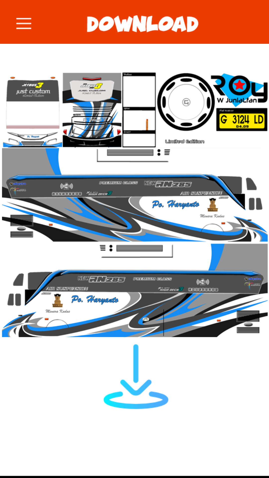 Welcome all in luxury livery, where the best skin bussid is gathered here. This time we will provide the leading bus brand in the country of Po Hariyanto for you. Contains a quality design, Arjuna XHD livery with clear high quality livery design material that will make your bus look cool and nice. Wrapped in one set of 12 skin pics will make you satisfied to have this livery. Filled with livery bussid jetbus 3, which is sought after by bussid lovers, it can make a memorable day when playing the Indonesian bus simulator. Our display this time is the newest 2019 bussid livery with clear bussid livery quality. Even though there are many livery bimasena requests that are at the premium level for all skin tpe buses, the demand for jb3 bus skins that have crossing Java, West Java, Central Java, between cities such as Jakarta, Kudus, Pati, Solo, and Yogyakarta is very much in demand , because the design is nice and luxurious. Now after rising levels of bussid v2.9 there are many features offered by this application such as bus simulator ID vehicle mod, where you can modify your bus in terms of bussid mod, mod truck canter, angkot mod and even pickup mod at once. For this reason, the presence of many features form many new templates such as anti-gossip livery, which are often sought after by businessmen because it is a cool vehicle, a newcomer livery bussid canter that touches the hearts of users of this game. And this is all packed together in the latest edition of the bussid livery that we are preparing to fulfill all of your requests. For that, please wait for downloading Hariyanto's livery and find the bussid jb3 livery in it. You will also be accompanied by bussid livery accessories such as the latest modified racing wheels, dark or transparent clear glass as you wish. Come on, what are you waiting for, play now the application, for bussid livery to your friends, because by sharing this bussid livery, you can play together when you want to mabar. With the bngid livery format, png and full hd, it will make the image quality of the template nice and beautiful, you will also get a bonus telolet horn, or a bussid horn added with a bonus bussid link livery collection. What are you waiting for, luxury applications with lots of additional bussid livery full variety, full strobe, full sticker, bussid modification will be very exciting when you play it. Let's install now too, there is a 2 png livery bussid jetbus too.