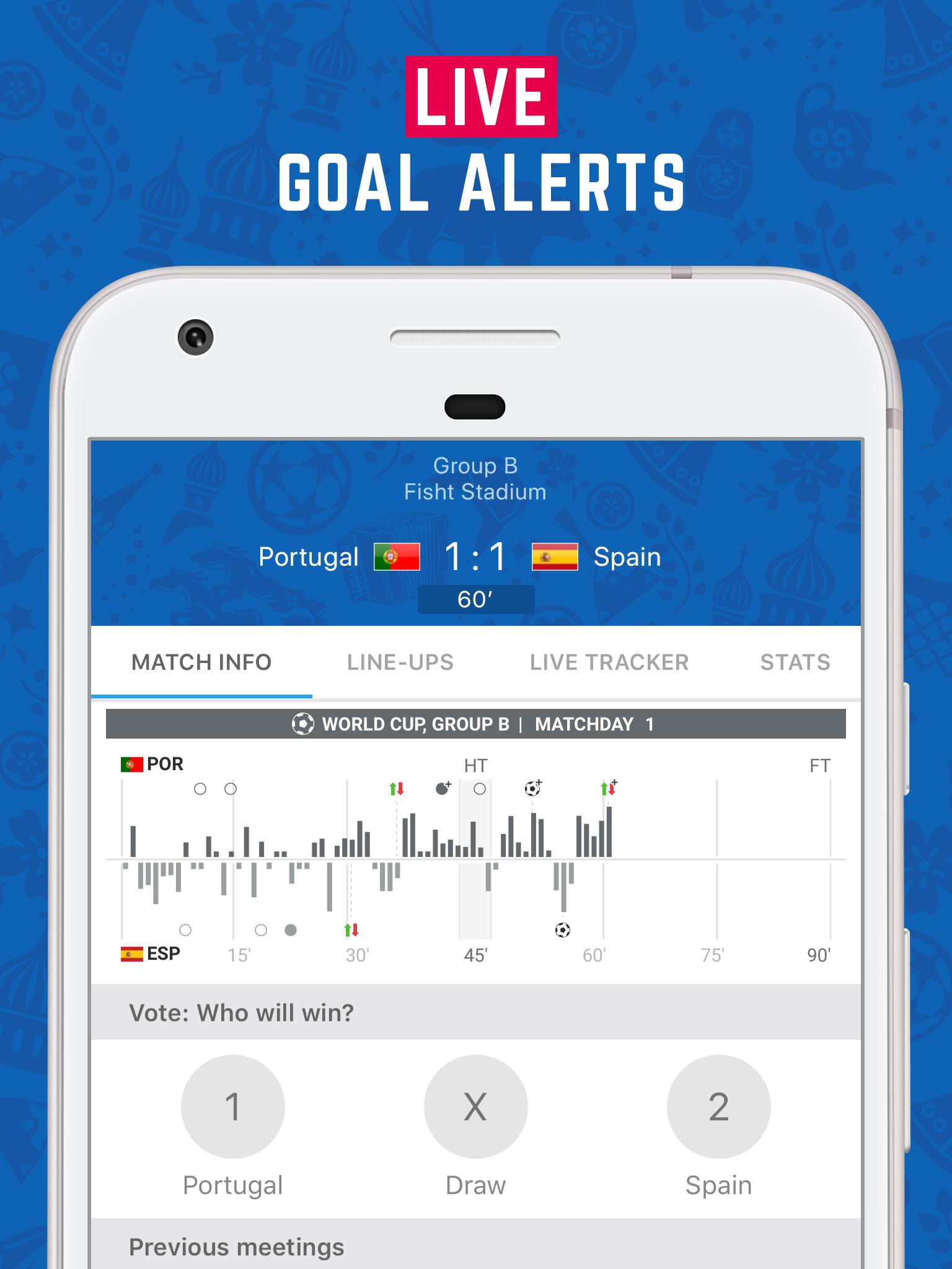 You won’t miss any of the World Cup 2018 action from Russia with LiveScore: World Football 2018. From fixtures, live scores and results to cup news, videos and stats, we’ll bring you all you need to know about the summer’s biggest sports event. The app is brought to you by LiveScore, the world leaders in live score updates with millions of users across the globe. LiveScore: World Football 2018 comes with the same reliability and speed as you’d expect from its sister service, plus a host of new features to help you follow the scores and World Cup action. As the schedule unfolds and the results come in from the Russia 2018 tournament, you’ll find out first – whichever country you’re supporting. Key features: -Watch videos bringing you the latest breaking news alerts direct from Russia and previews for all of the World Cup 2018 tournament’s 64 matches. -Whether you support England, Germany, Brazil, Argentina, Nigeria or any of the other 27 countries, you’ll be able to access the entire World Cup 2018 tournament schedule and plot your team’s route from the group stages to the final. -Look at team profiles to catch up on your favourite country or to assess the competition, with dedicated news, videos and stats all available. -Find out how your favourite cup players are performing. From Mane to Messi to Muller, see who’s leading the goal scorer charts, providing the most assists and spending the most minutes on the pitch. You can now also see your player’s career info and how they’re getting on at Russia 2018, as well as their world qualifier 2018 stats. If that doesn’t help you pick your World Cup Fantasy Football team, we don’t know what will! -Detailed match analysis is at your fingertips. From attacking momentum to live ball tracking and commentary, you can view the match as if you’re there in Russia with top football pundits. -Live match commentary includes goals scored, assists, corners, cards and descriptions of the cup action – ideal for World Cup Fantasy Football fans -Check head-to-heads for each match including scores and in-depth form details for all countries -See line-ups as soon as they’re announced before each fixture begins -Get alerts for multiple World Cup 2018 matches at the same time so you can keep on top of what’s happening across all of the live groups – and keep track of your bets. -Customise the alerts you want to be notified about, choosing anything from a match reminder, goals, fouls and even when a penalty’s been awarded -See group league tables and watch as they’re updated as soon as the goals go in -Highlights and detailed possession, shots and fouls stats at the end of the match. -Read the latest football updates, previews, on-the-whistle match reports and reaction to the biggest stories from all 32 cup teams. Great for when you’re making the last switches in your World Cup Fantasy Football team. -See all of the upcoming fixtures for the Russia 2018 World Cup tournament ABOUT LIVESCORE 2018 As the first Internet-based live sports updates service, LiveScore has been updating people with the latest sports fixtures, news, stats, in-play scores and results since 1998. LiveScore World Football 2018 focusses exclusively on what happens in Russia 2018 World Cup tournament as football, calcio, fussball and soccer fans converge to celebrate the beautiful game. What’s New 13th June update Thanks for downloading our app. It’s tournament time! We’ve made some minor bug fixes and small design changes to make sure your experience is as smooth as possible for 2018’s big event. Get live score updates for all of the matches in Russia, plus cup news, videos, tables, fixtures, schedules and stats. Don’t miss a second of the action with LiveScore: World Football 2018.