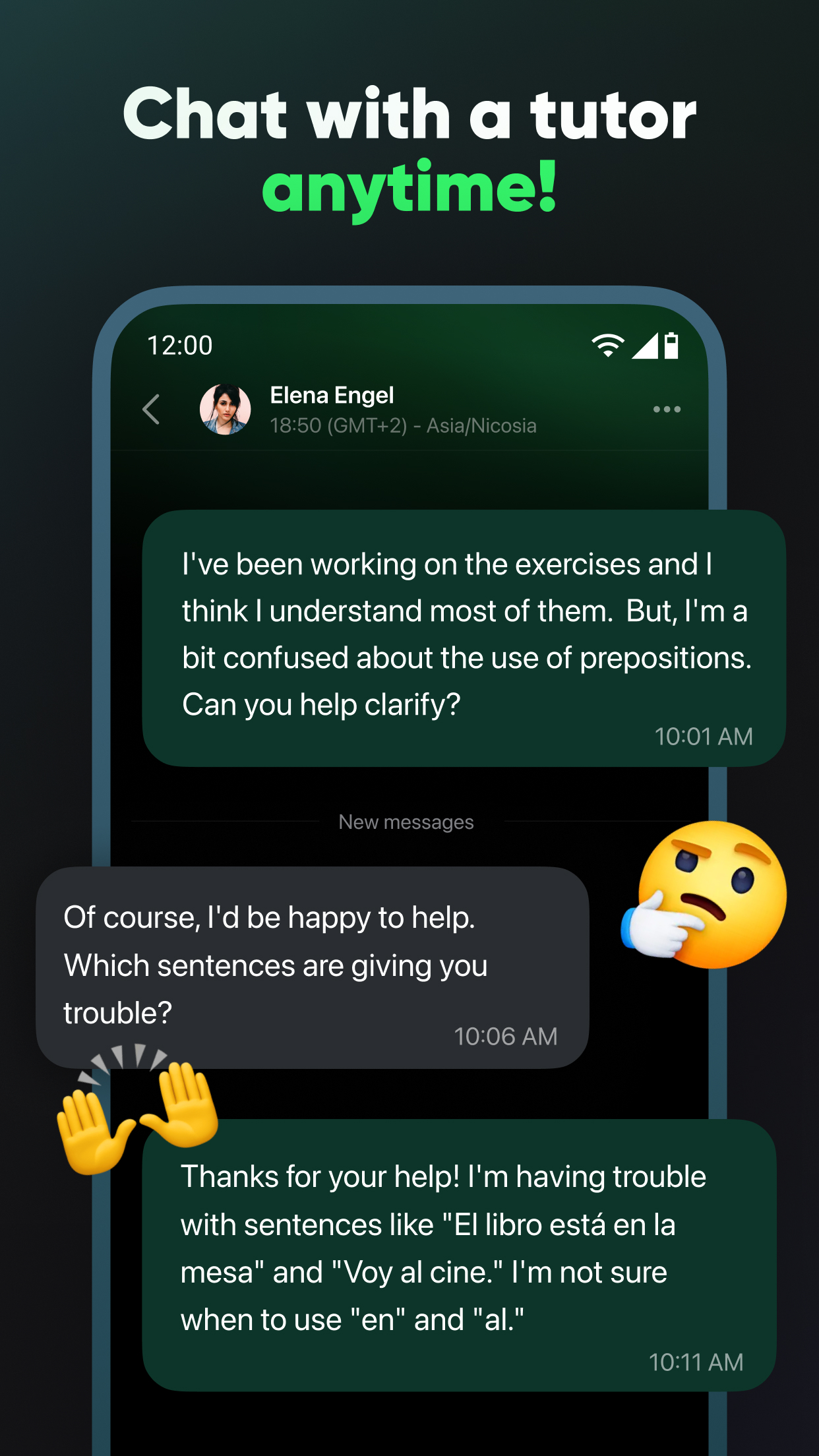 Join Your Tutoring Session: Connect with your teacher in a live video session and dive into immersive language exchange through activities, speaking, and exercises.