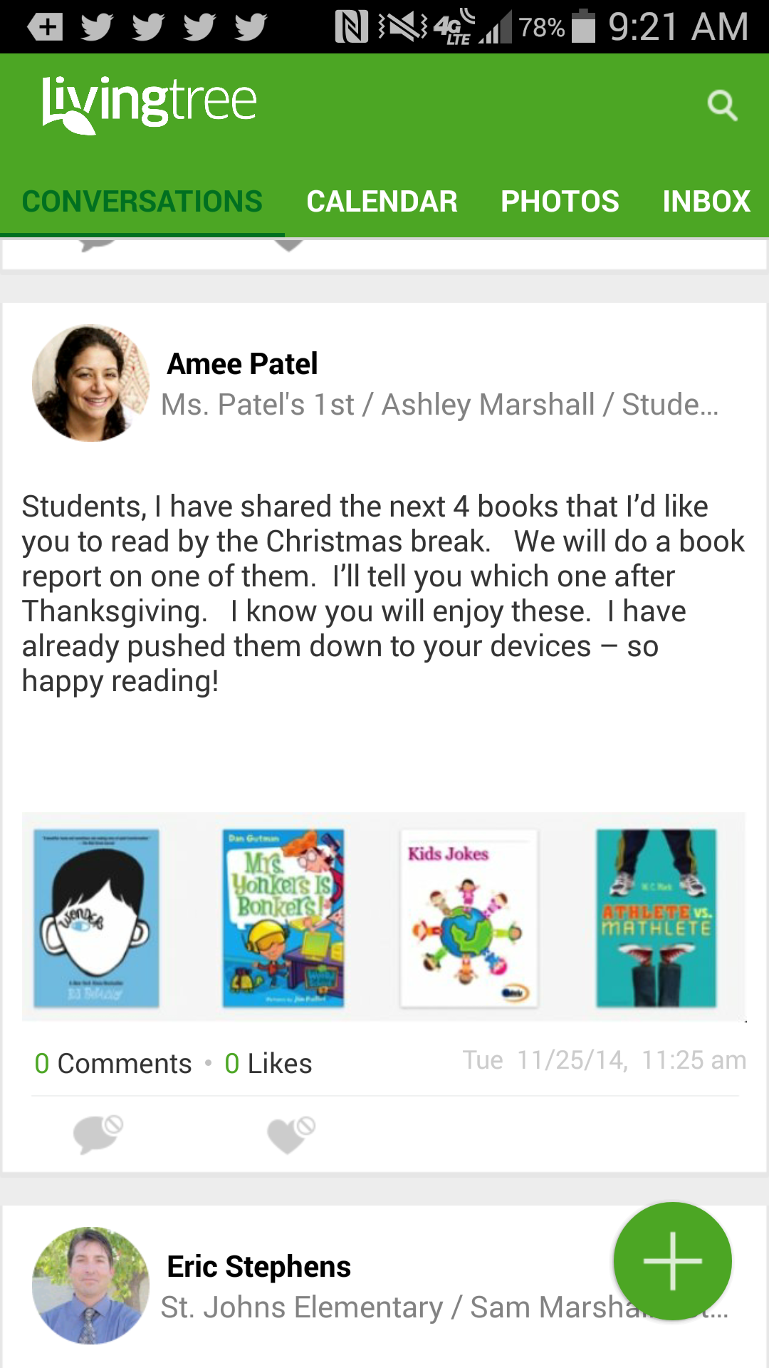 • Conversation Feed – View an aggregation of posts from your classroom and school groups, and have two-way conversations.