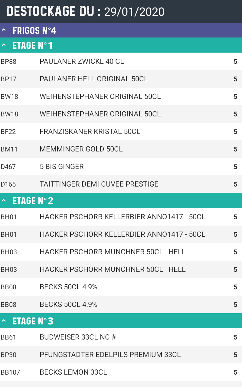 Visualisation du déstockage en cours et des anciens déstockages dans l'option validation