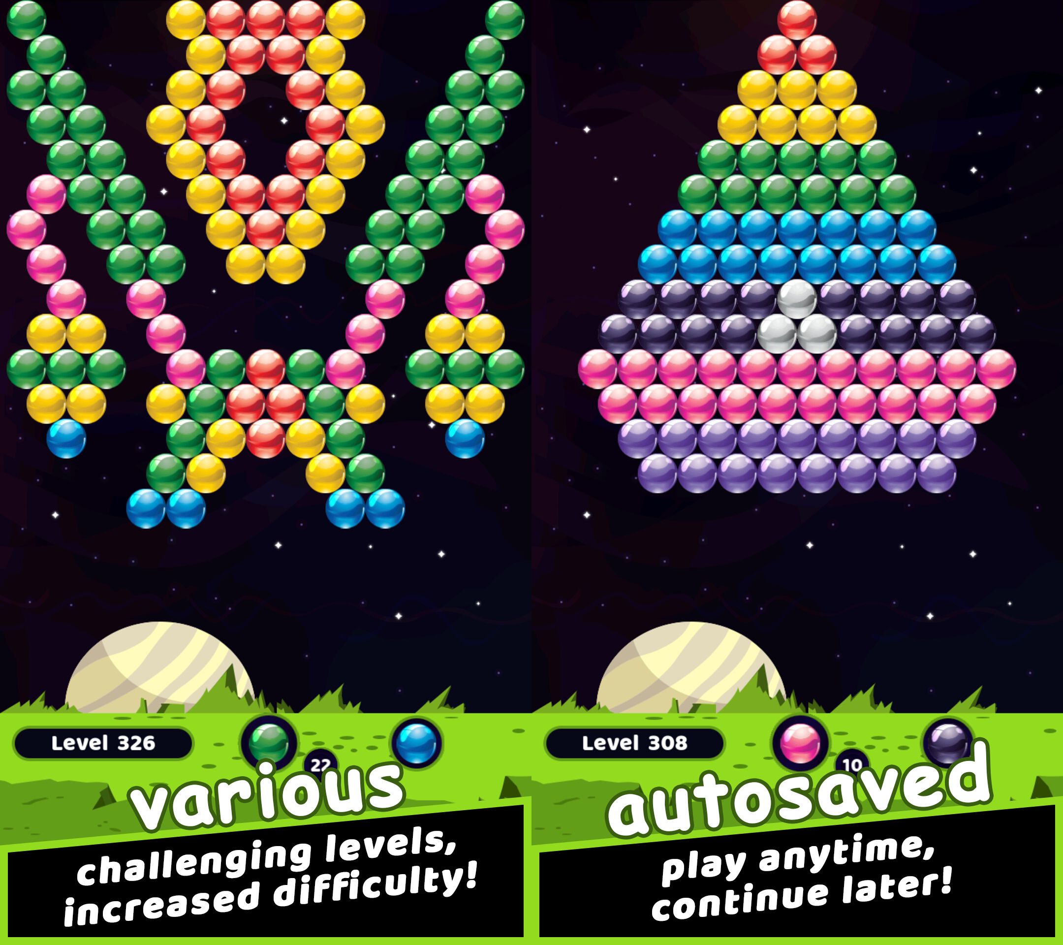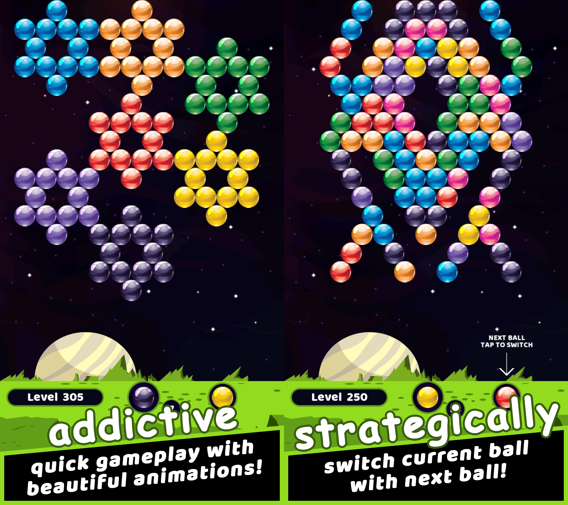 Bubble shooter game meets Lollipop in this new, cute and super-addictive puzzler. Shoot bubbles in space to help LOLLY solve hundreds of special designed levels. Help LOLLY pop all bubbles and overcome challenges during bubble shoot in her mission to discover the secrets of the lollipop galaxy! The objective of the game is to match and pop bubbles and complete the puzzles. Matching at least three colors will burst the bubbles. Inspired by classic bubble shooter gameplay, served with the sweet taste and beauty of Lollipop we all love, Lolly Pop Bubble Shooter delivers a cute, calm, and addictive bubble shooting game for you to play. Game Features ★ Lollipop game with Simple user interface (UI), Easy to learn with in-game how to play! ★ Bubble shooting game with fast-paced gameplay, Beautiful graphics and animations! ★ More than 795+ Unique Levels and growing! Match and pop colorful bubbles in special "handmade" unique stages! ★ More Complete with 9 different colored balls and special boosters! ★ Aim, Shoot, Switch current ball with next ball strategically with limited shots! ★ Autosaved game, "Continue" your progress later or re-play previous stages! ★ Very Calm, Relaxing, Cheerful and refreshing background music and sound effects! ★ One-hand friendly Android game, Designed specifically with the portrait orientation in mind! ★ and last but not least, this bubble shooting game can also be played offline! How to play Lolly Pop Bubble Shooter game: - Drag your finger to aim, and lift it to shoot bubbles and pop all the bubbles on the screen by matching 3+ colors to clear the missions for every stage along the way. - Make progress by winning levels in increased difficulty, to help in your lollypop quest. Complete all the puzzle, so much fun! Let's play and test your bubble popping game skills!