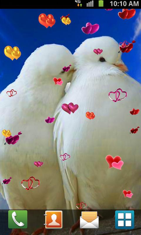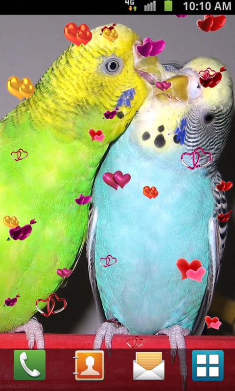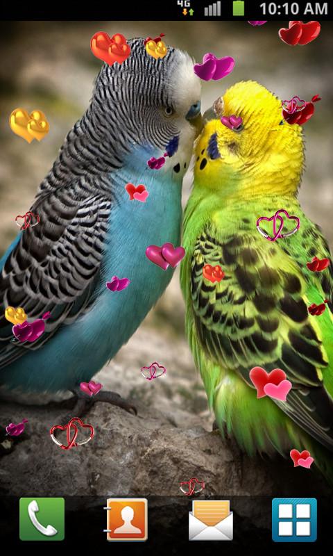 Love birds live wallpaper is perfectly novel live wallpaper which suites perfectly to your Android mobile. Love birds live wallpaper is absolutely free. Love birds live wallpaper gives you fantastic wallpapers like Romantic swimming of love couple - white swans in blue pond watet, romanticall kiss of white parrot, love expression of small birds, romance between beautiful red parrot, orange color ed love birds, green parrot couple looking each other at a branch of tree, birds love in the sky, blue parrot on a branch, blue pigeons love, pure white pigeons, couple of blue and green parrot, white swans with red beak making love symbol together, beautiful eyes of long necked swans. Here you find different types of parrots, sparrows, macaws, pigeons, and swans.
