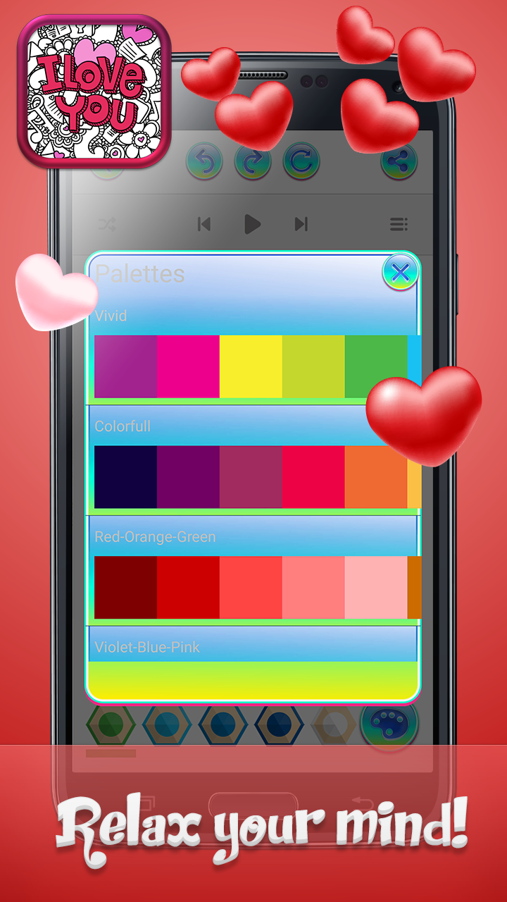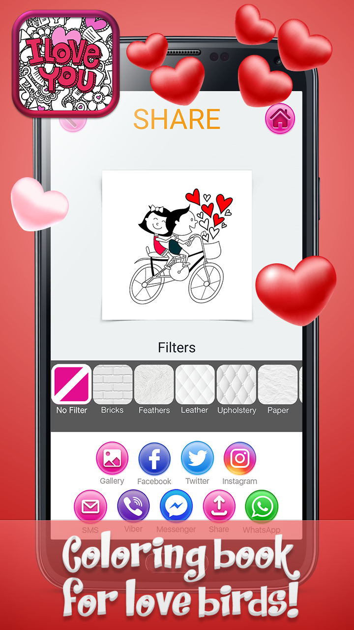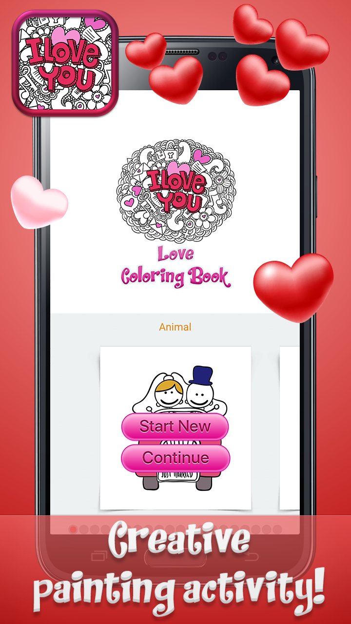Let your creative spirit and romantic soul spark with ❤ Love Coloring Book Pages with Romantic Drawings ❤. Express your feelings through painting beautiful pictures from the best color pages for romantic couples. Experience sweet romance with cute and detailed illustrations of hearts, floral patterns, angels and sweethearts. Inside this "coloring book of love" you can find lots of sketches and doodles to color and enjoy. So grab this one of a kind i love you coloring book, download free painting app and have fun filling hearts with vibrant colors! Play "romantic drawing coloring game" all day long! 💜💙❤💛💚💜💙❤💛💚💜💙❤💛💚 ❤ Love Coloring Book Pages with Romantic Drawings ❤ app features: ♡ Beautiful drawings and pictures to color! ♡ User friendly and very intuitive interface. ♡ Long press to select colors, paint and pinch to zoom the page. ♡ Awesome love coloring books for adults! ♡ A wide range of illustrations, doodles and mandala patterns. ♡ Use glitter, colors, crayons and various shades and nuances. ♡ Personalize color palettes and create your own color combinations. ♡ Design unique work of art experimenting with different filters and effects. ♡ Save different version of your color art, save it as wallpaper or recolor it later! ♡ Share your creations with family and friends on social networks. 💜💙❤💛💚💜💙❤💛💚💜💙❤💛💚 💗💗💗 Romantic picture book with lots of cute images for you to color! Romantic coloring book offers lots of pages designed in themes like wedding, roses, hearts, romantic couples, cute animals and cupids. Start drawing and painting hearts and roses coloring sheets as soon as possible. Paint and draw with plenty of painting tools and play relaxing coloring games for adults. Select your favorite doodle pictures to color and fill the lines with gentle shades and lovely contrasts. Calming drawing games for grown-ups allow you to make your own color palette, experiment with various filters and effects. You can also use virtual brushes, colored pencils, gel pens or crayons. Engage yourself in hours of peaceful fingerpainting and enjoy creating magical illustrations from ❤ Love Coloring Book Pages with Romantic Drawings ❤. Share your colored drawings as romantic cards or love wallpapers with your significant other. 💗💗💗 Join "color me with love" painting adventure! The most tender feeling is the inspiration for the best works of art of all times! Start the enchanting romantic adventure and beautify color me with love picture book pages. Gorgeous illustrations from I love you coloring book for adults will take your breath away and inspire you for creating wonderful works of "love color art". ❤ Love Coloring Book Pages with Romantic Drawings ❤ is inspired by romantic themes such as wedding, roses and other flowers, fluffy hearts, angels and cupids, romantic couples and cute little animals. Use your imagination and creativity and colorfy romantic drawing coloring pages the best you can. Have fun making different versions of your color art pictures and enjoy discovering your artistic gifts and paint skills. 💗💗💗 Colorfy incredibly detailed romantic drawings and doodles! Valentines love coloring books for adults are perfect pastime for all sweethearts. Spend your pastime wisely taking part in this creative art activity. Express your creative side and tender feelings for your darling using vibrant colors and shades. Play this sweet painting game and beautify cute illustrations of roses, floral patterns, hearts, romantic couples, sweet animals and cupids. ❤ Love Coloring Book Pages with Romantic Drawings ❤ app is now available for free download and use. Install love and letter coloring book this moment and start experimenting with magic colors as soon as possible.