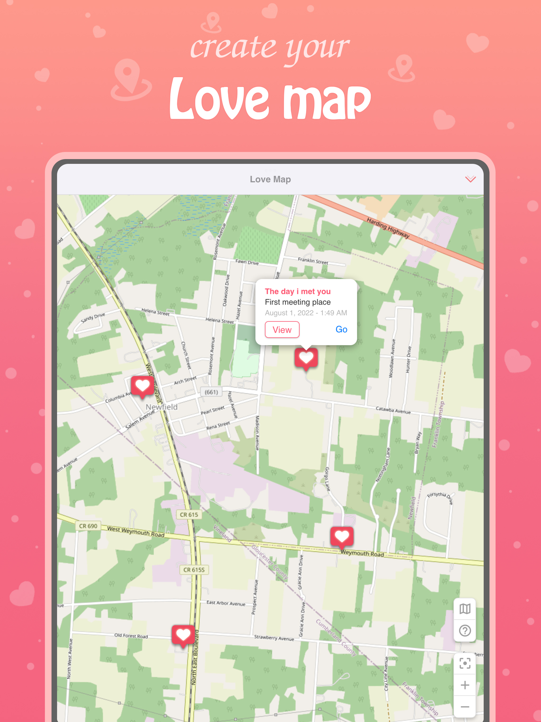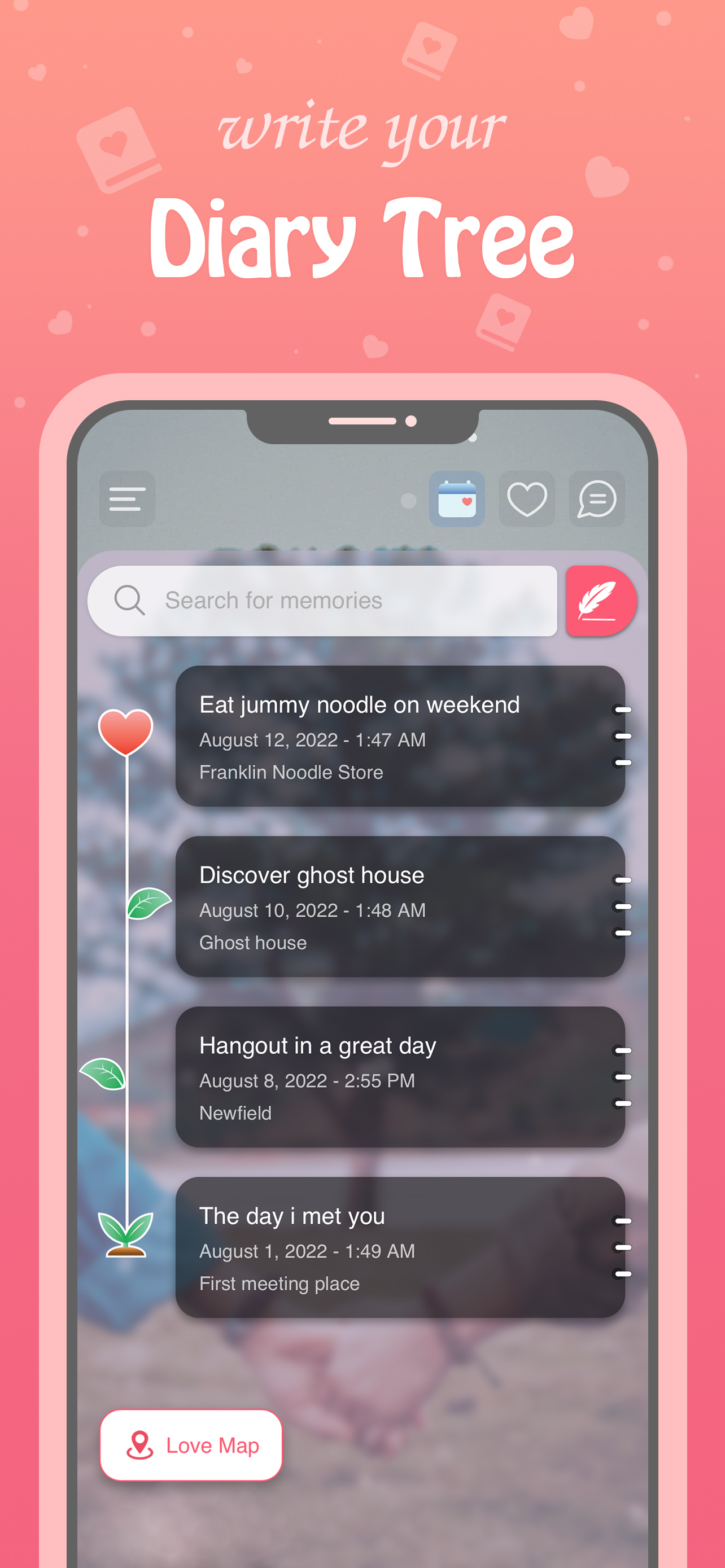 Love Paradise will help you create your own love map. Love map is a map based on your created diaries. It'll show locations which you and your lover have been there together.