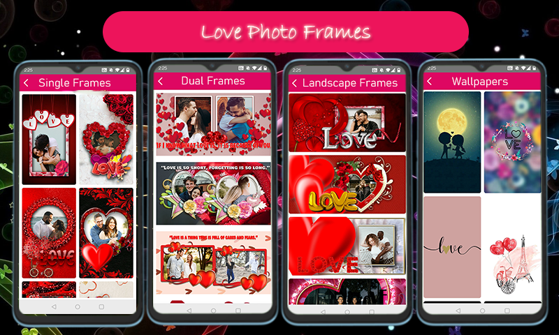 💖 Love Photo Frames: Capture Your Romantic Moments 💖 Create beautiful and memorable love-themed photos with the "Love Photo Frames" app, designed to make every moment special. Whether you're celebrating Valentine's Day, your wedding, an anniversary, or just cherishing a moment with your loved one, our app provides a wide array of romantic photo frames, effects, and editing tools to make your photos stand out. From heart-shaped frames to elegant wedding photo borders, this app has everything you need to express your love through pictures. 🌹 🌟 Key Features: ✔ Select a photo or picture from the gallery or capture it in real-time: 📸 Choose your favorite photo from your gallery or snap a new one with your camera and instantly start editing. ✔ Add personalized text: 📝 Enhance your photos by adding text to the frames. You can customize the size, color, and font of the text to match your style. ✔ Flexible editing options: ✨ Rotate, scale, zoom in, zoom out, or drag your photo to perfectly fit your chosen frame. Whether it's a couple photo frame or a heart photo frame, you have complete control over your edits. ✔ Over 100 HD quality frames: 🖼️ Choose from more than 100 beautifully designed portrait and landscape frames, perfect for any romantic occasion. From Valentine's photo frames to wedding and anniversary frames, there's something for every special moment. ✔ Dual Landscape frames and Love Wallpapers available: 🌄🌹 Enhance your photos with dual landscape frames and choose from a selection of beautiful love-themed wallpapers. ✔ Supports all screen resolutions: 📱 Whether you're using a mobile phone or tablet, our love photo editor ensures that your photos look stunning on any device. ✔ Save and share instantly: 💾 Save your newly edited images with a single tap and share them instantly on social networks. Show off your romantic creations to friends and family! ✔ User-friendly and free: 🎉 The Love Photo Frames app is incredibly easy to use, making it accessible for everyone. Plus, it's completely free to download and enjoy. Express your love through beautiful and romantic photos with the "Love Photo Frames" app. Whether you're making a love collage, editing a couple's photo, or simply adding a romantic touch to your pictures, this app has all the tools you need. Download now and start framing your love!