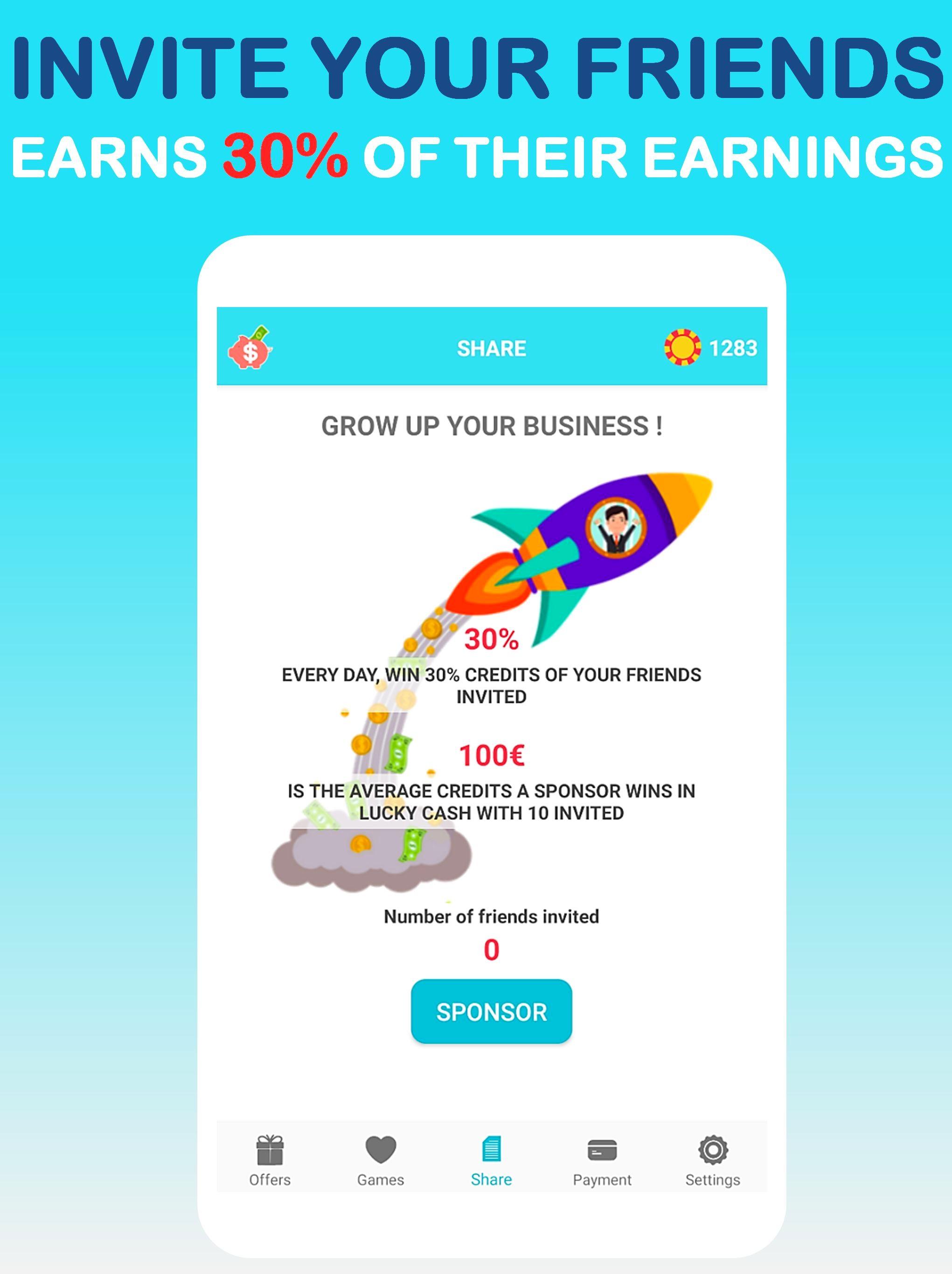 Lucky Cash (Package Name: com.moneyapp.makemoney) is developed by E-Conit - Mobile company Inc and the latest version of LuckyCash - earn and learn ! 5.0.0 was updated on June 29, 2024. LuckyCash - earn and learn ! is in the category of Education with the feature Casino. You can check all apps from the developer of LuckyCash - earn and learn ! and find 46 alternative apps to LuckyCash - earn and learn ! on Android. Currently this app is for free. This app can be downloaded on Android 5.0+ on APKFab or Google Play. All APK/XAPK files on APKFab.com are original and 100% safe with fast download.