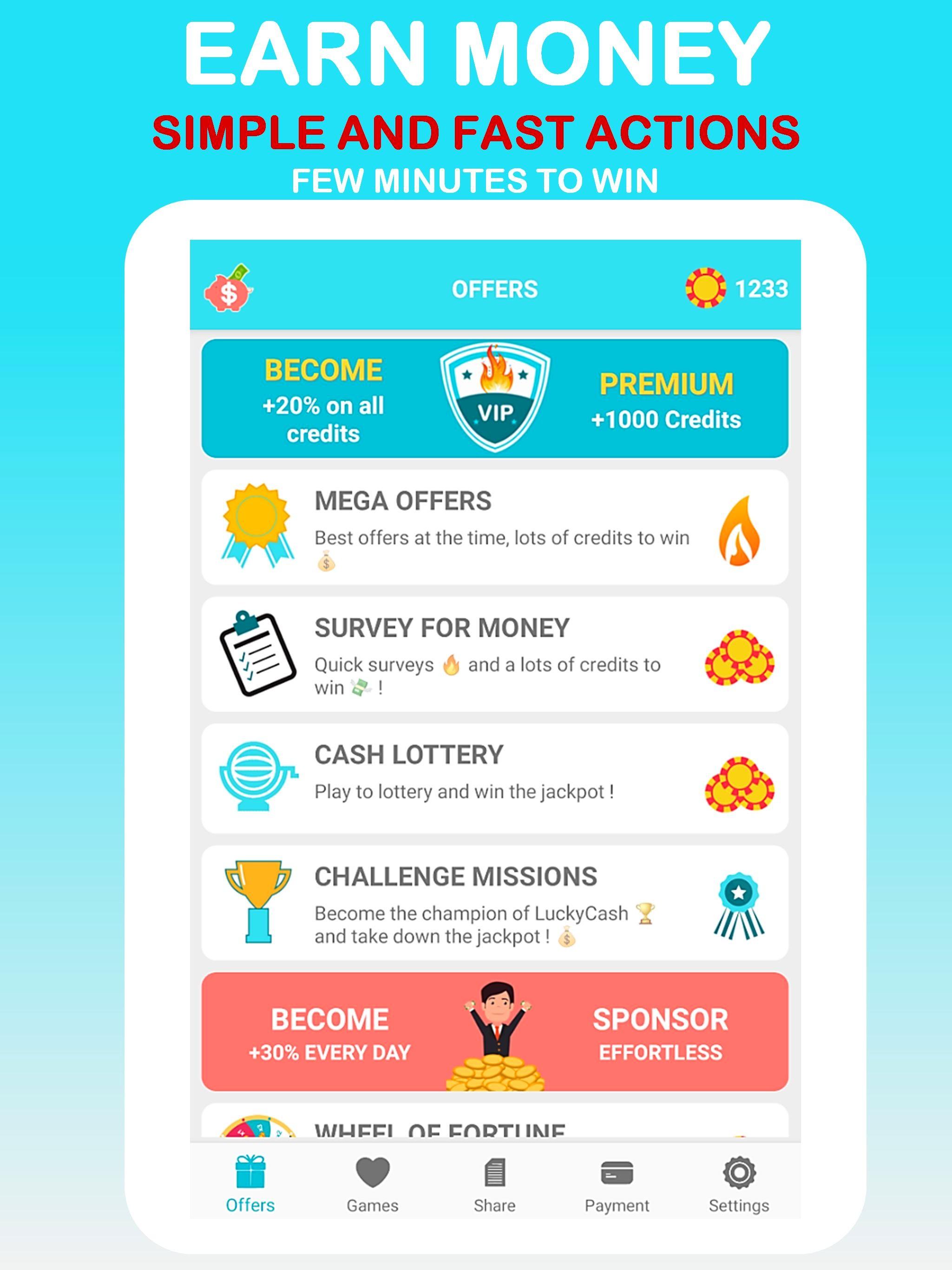 With LuckyCash, Earn credits with simple and fast actions. Turn your credits into real money! Easy, free and fast to make money. PayPal or gift cards.