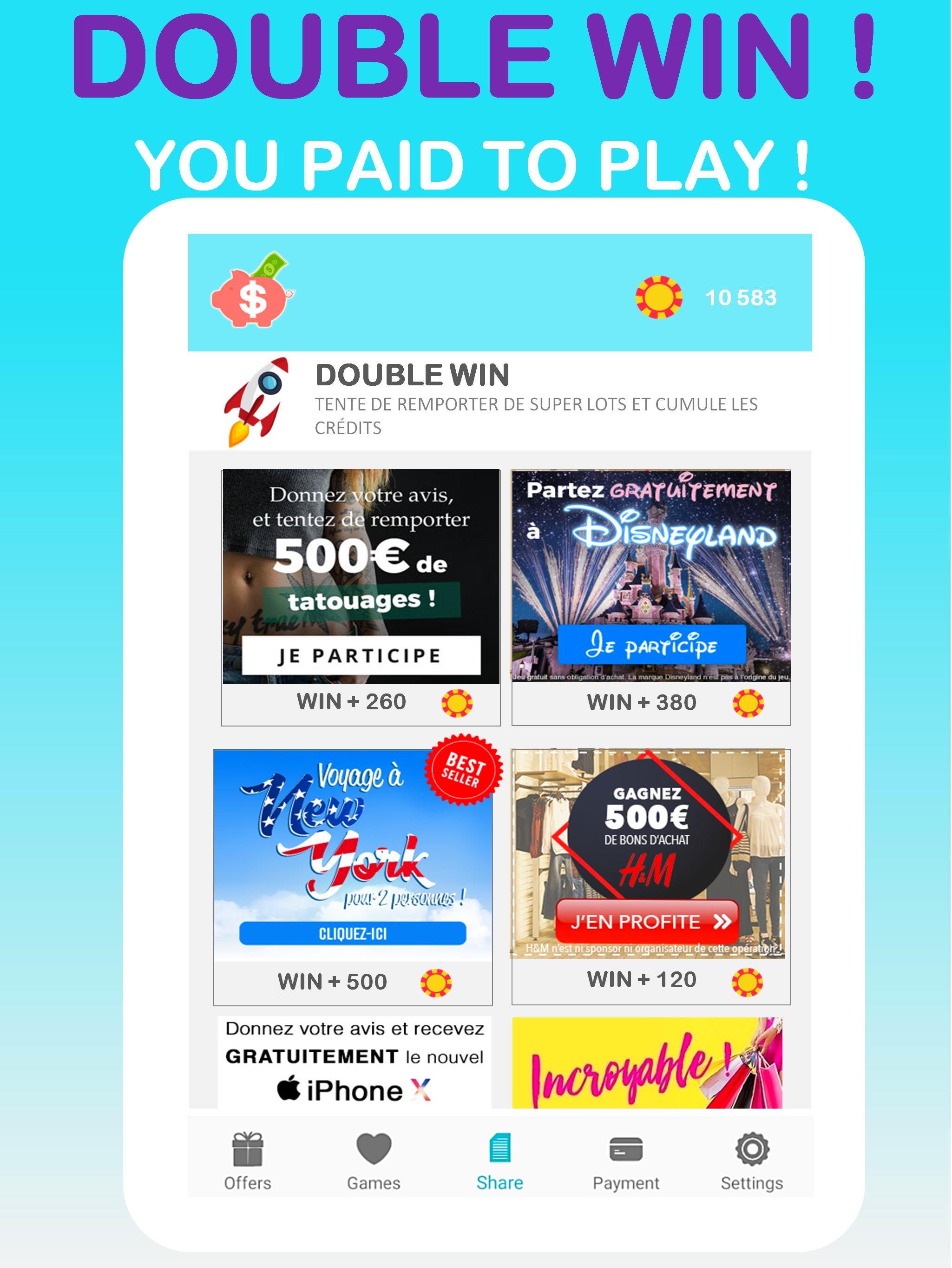 It is also possible to play DOUBLE WIN, they are contests to win prizes. Registration earns credits and the user has a chance to win the jackpot!