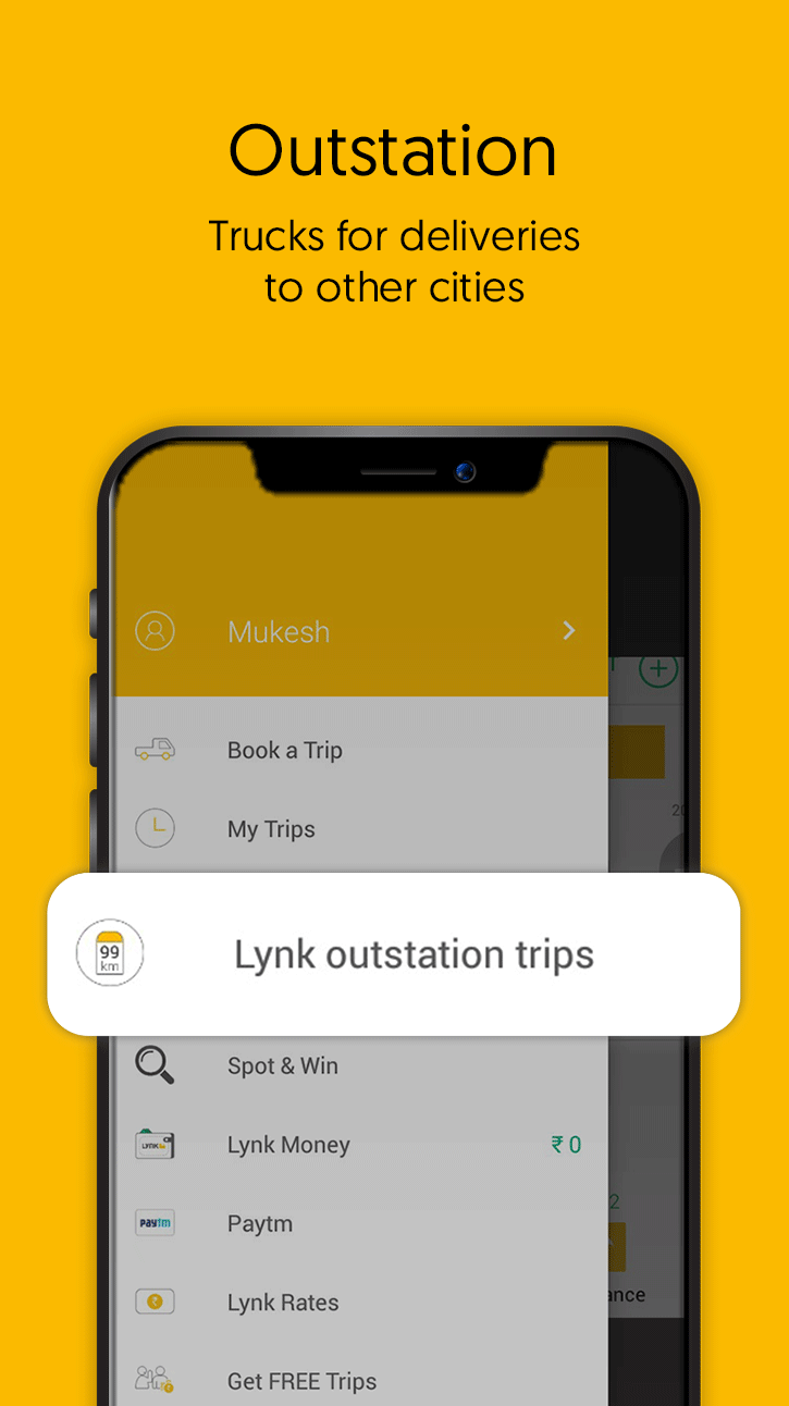 Outstation – schedule full truckload deliveries to other cities:To book a truck to transport goods to another city, select ‘Lynk Outstation Trips’ from the menu. You can schedule a booking up to 7 days in advance.