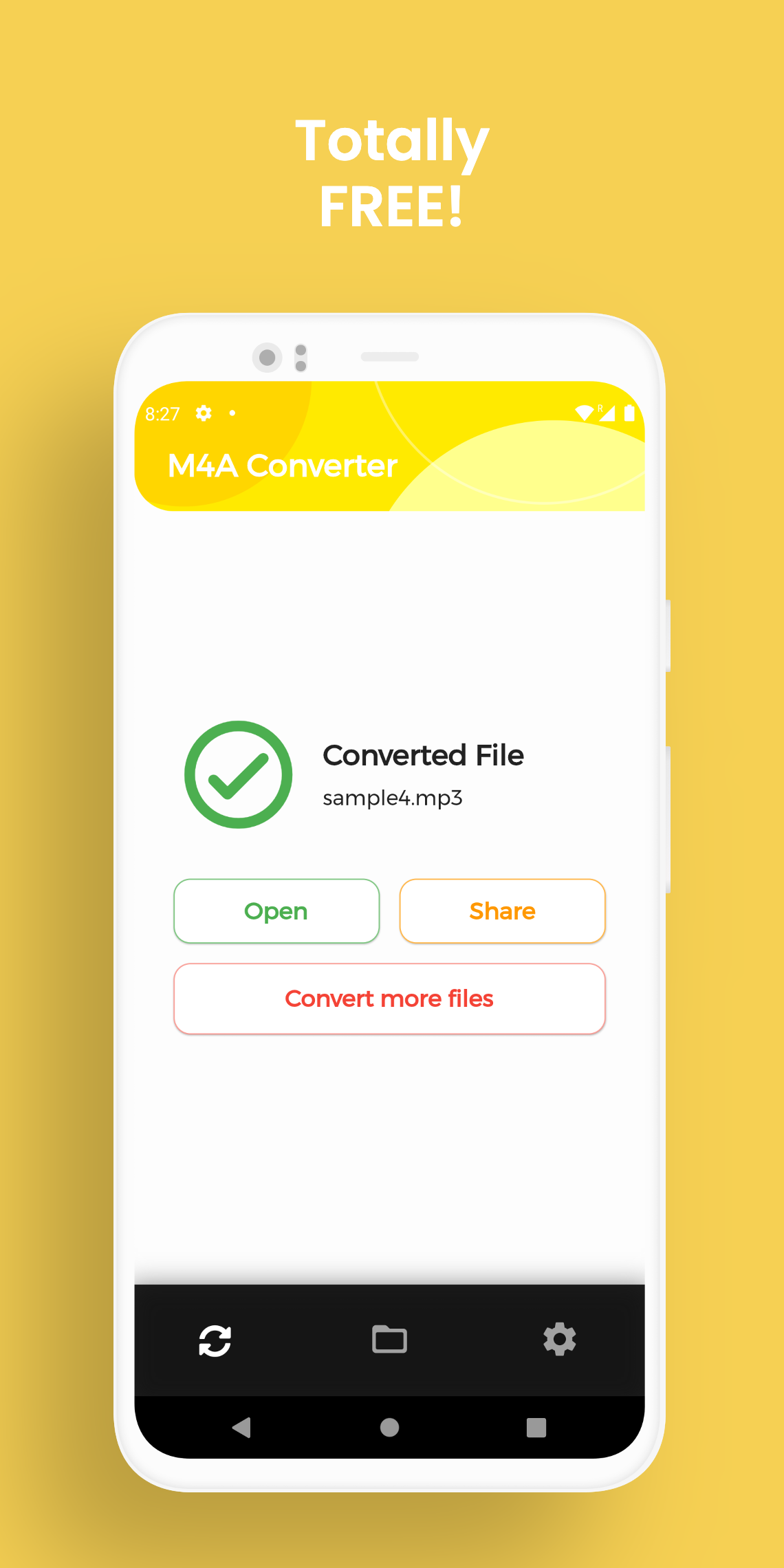 🔃 Do you need to convert your M4A file to another file? 🔃 Convert M4A to MP3? M4A to WAV? 🗄️ Convert your M4A file easily and completely free of charge (No additional costs) Make your M4A files easy to view by converting them into other formats. This conversion application allows you to convert any M4A file to other files like MP3, WMA, AAC, OGG, WAV and OPUS, it can also convert other files to M4A. No limit on conversions or exaggerated waiting times and totally free! 🔝 Main features of M4A Converter 🌟 Excellent conversion quality. 🌟 Very fast conversions, stop waiting for absurd times to convert your files. 🌟 Totally free, without subscriptions or additional payments. 🌟 Audio files are precisely optimized, preserving sound quality at all times. 🌟 Convert from M4A (M4A to MP3) and from (M4A to WAV) 🌟 No limit on the number of converted files and on the file size. 🌟 Supported extensions: MP3, WMA, AAC, OGG, WAV and OPUS 🌟 Easy and fast! 🔊 In the conversion options, you can configure “Audio Bitrate” and the “Sample Rate” of the audio files you want to convert! 💯 Make M4A files private, no email required, just select the file you want to convert and convert it. Without wasting time in the registration process. When the conversion is complete, the file will be available for use. 🔄 You can convert an unlimited number of files. The M4A converter is completely free and there is no limit on the number of files converted. The conversion speed depends on the size of the file. 📂 All the converted files are saved in the root folder of your phone, in the folder "M4A Converter" 🌐 Application translated into the following languages: Spanish, English, French, German, Italian, Portuguese, Russian.