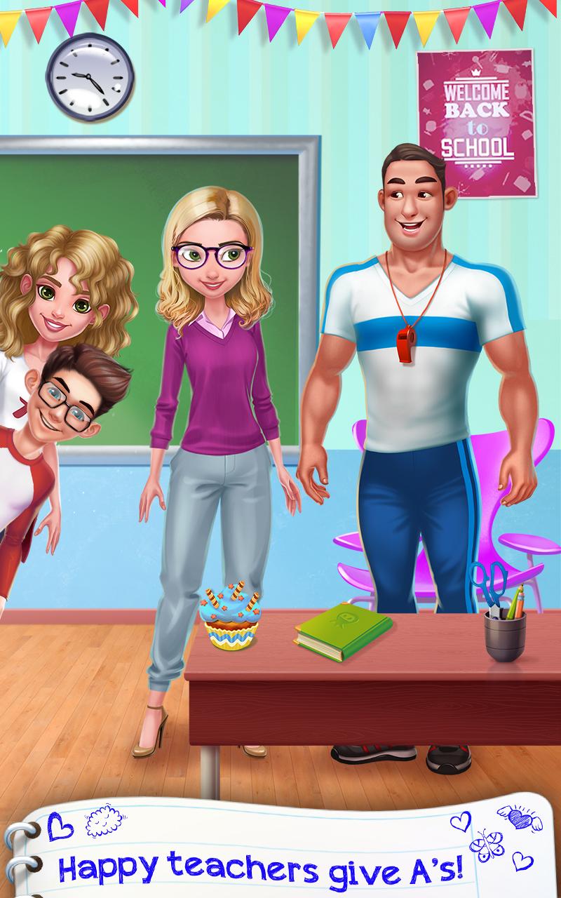 Has your teacher gone MAD?! She’s threatening to give you all an F, but you didn’t do anything wrong! You and your friends pull off the funniest classroom pranks - but now her face is turning purple! Time to enact the secret plan! Set her up with the gym teacher, and she’ll forget all about you! She needs a girl’s makeover and dress up to pull off the perfect high school story.