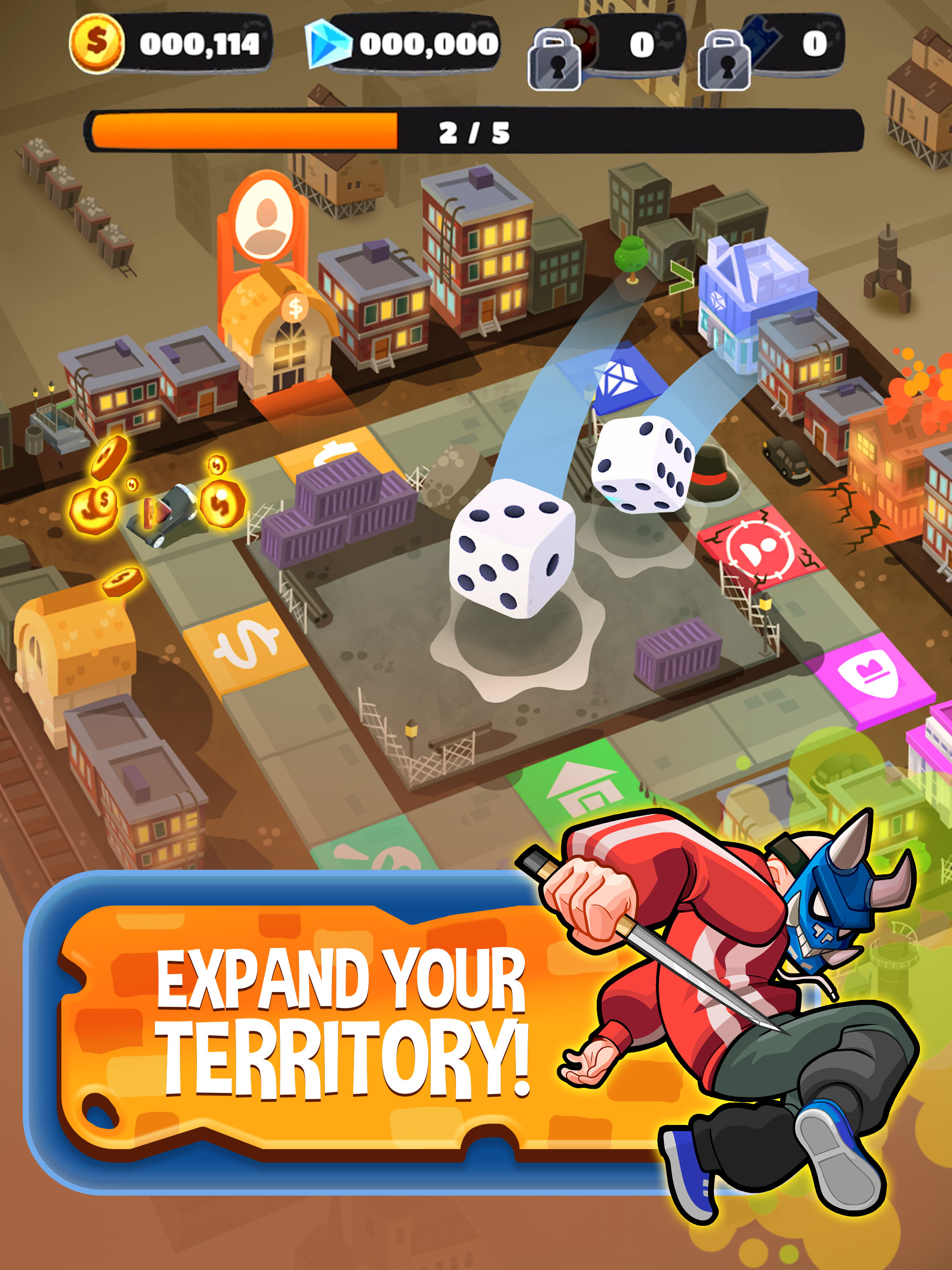 If you want to become the new mafia king, you must use your best weapons: the dice! Build the biggest mob gang and conquer every territory in the city in a board game made for an aspiring godfather! Awaken the gang boss within, choose your favorite mob character and enter the board to wage a thrilling war over every territory and influence throughout the city! Roll the dice, fight your rivals and take over the board in your way to become the mob king to rule every mafia godfather! BUILD your mob gang and fight rival mobs on the board to conquer new territories! ROLL the dice in an exciting board game to become the new mobster godfather king! BATTLE rival mobs with your army of mafia gangster mobsters and build up your team to face the powerful gang boss guarding each board territory! RECRUIT capos from a variety of crime gangs: Yakuza, Cosa Nostra, Irish mafia…get them working for you and upgrade them to the level of godfather kings! BECOME the most influential mafia leader in town and rule over every other mob king with your dice guns power, like a yakuza hot shot! The board game season is open and your mafia crime empire story is about to start, godfather boss! Take over rival mafia crime businesses like the meanest yakuza mob kings, roll dice and recruit gangster talent as new capos for your criminal mafia empire team! Have a fond memory of those mob movies where a mafia family makes their way through the mean streets of a crime-ridden city, guns out? Well, now is your chance to be the boss and guide your own gang to a big pile of money and absolute gangster power! Will you take over businesses, sell guns, charge crime tolls around town, or maybe rob banks with the yakuza? Make enough criminal cash to take over each territory and the whole board game empire, but watch out for rival mafia gangs because, boy, oh, boy, they're going to try and stop you with help from everyone from their crime boss to their gangster mamma with guns blazing! Take your place as the gangster godfather, as you roll your dice guns to battle rival mobsters in a board game so fun, it's criminal! Roll dice to move tiles, take over criminal businesses and recruit capos for your mob. Roll around town, battling rival capos and gangs with guns and building your board game empire!