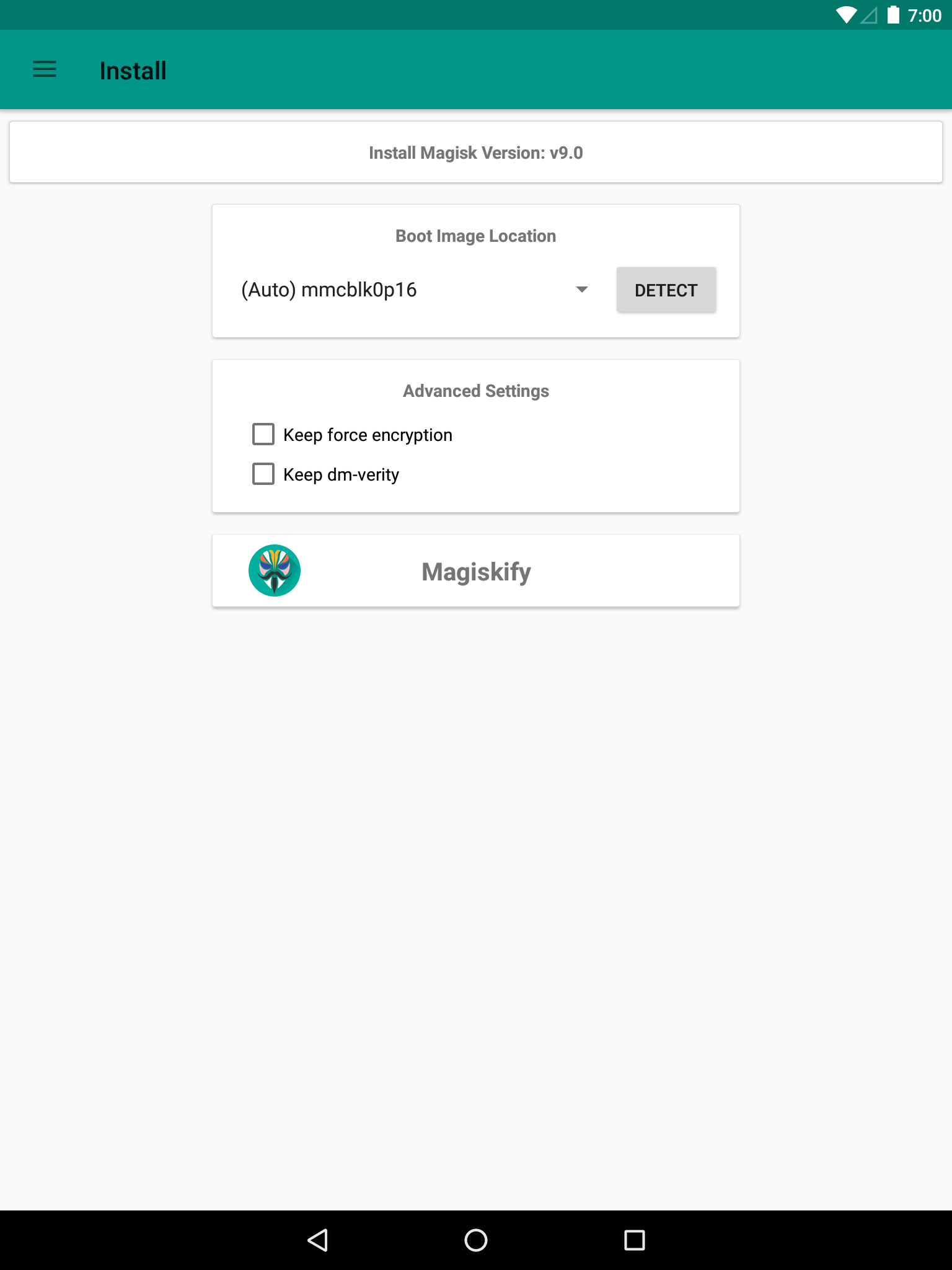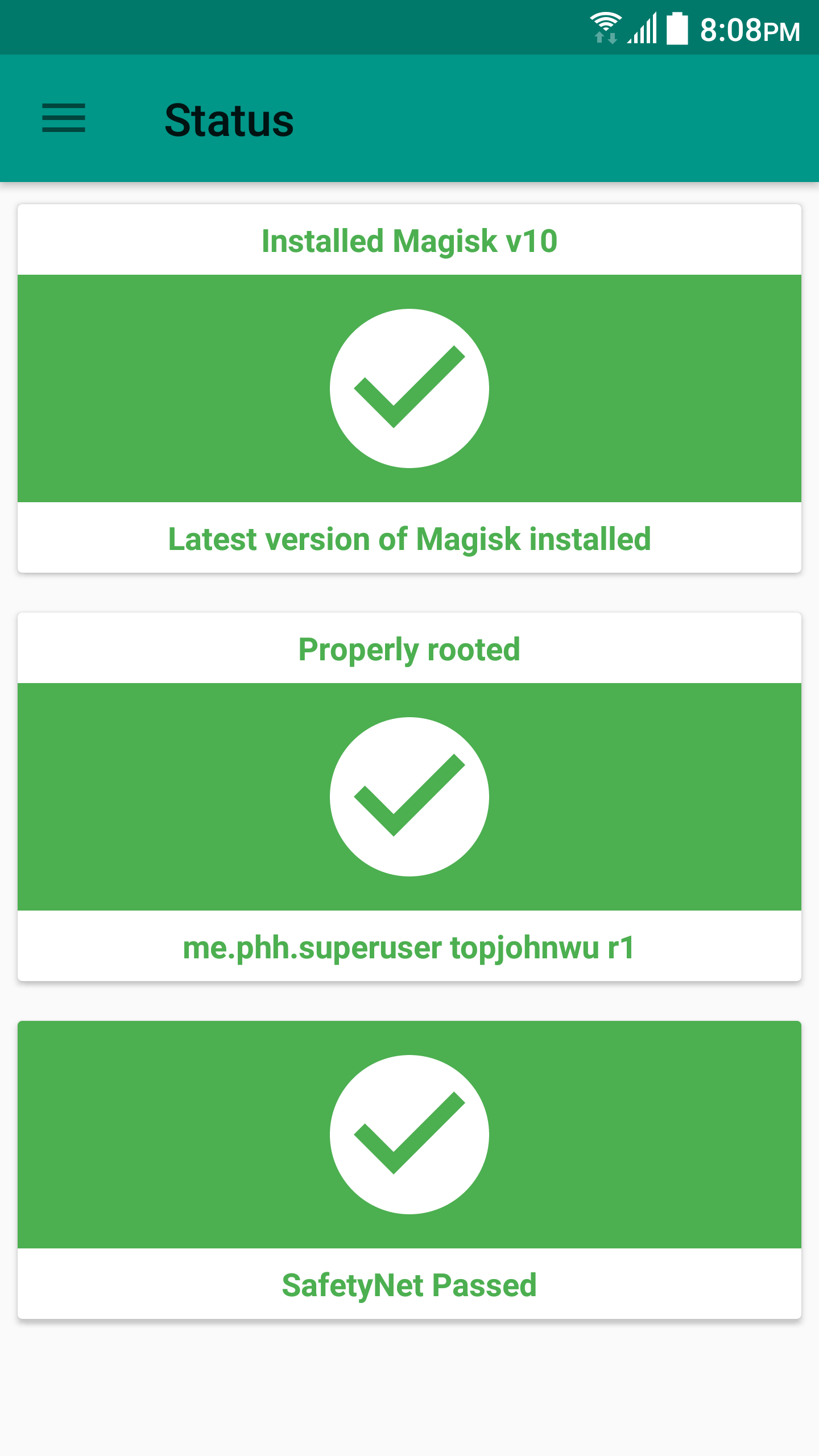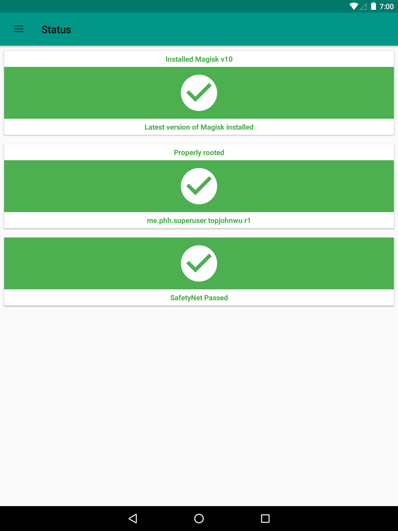 Magisk XDA Release: https://forum.xda-developers.com/showthread.php?t=3473445 Install, upgrade, manage, configure the Universal Systemless Interface - Magisk within a single app! Here are some key features: Status • Check Magisk Version and updates • Check root status • Check SafetyNet Install • Select boot image location • Advanced installation settings Superuser • Manage Superuser permissions • Toggle logging and notifications for each individual application Modules • Enable/disable, remove Magisk Module • Manually add Magisk modules by selecting Magisk Module zip files Downloads • Download Magisk Modules hosted on the Magisk Repo Magisk Hide • Select the app you want to hide Magisk from Settings • Toggle systemless host support • Toggle Busybox support • Toggle Magisk Hide • Tons of Superuser settings ... and much more to come!