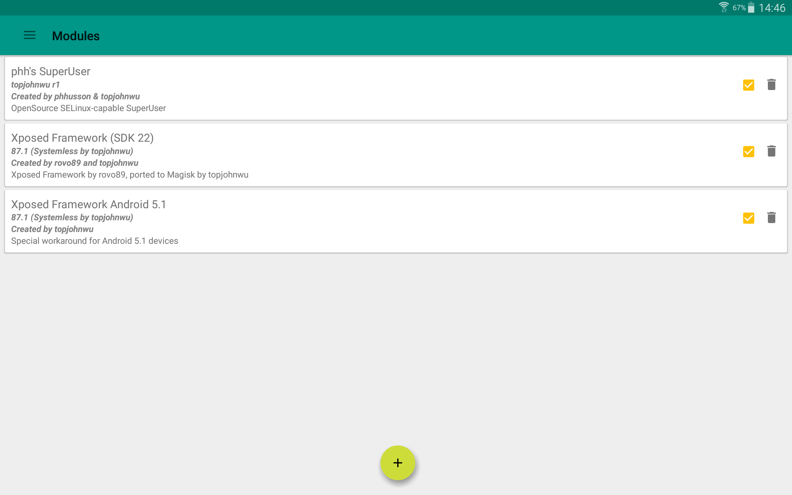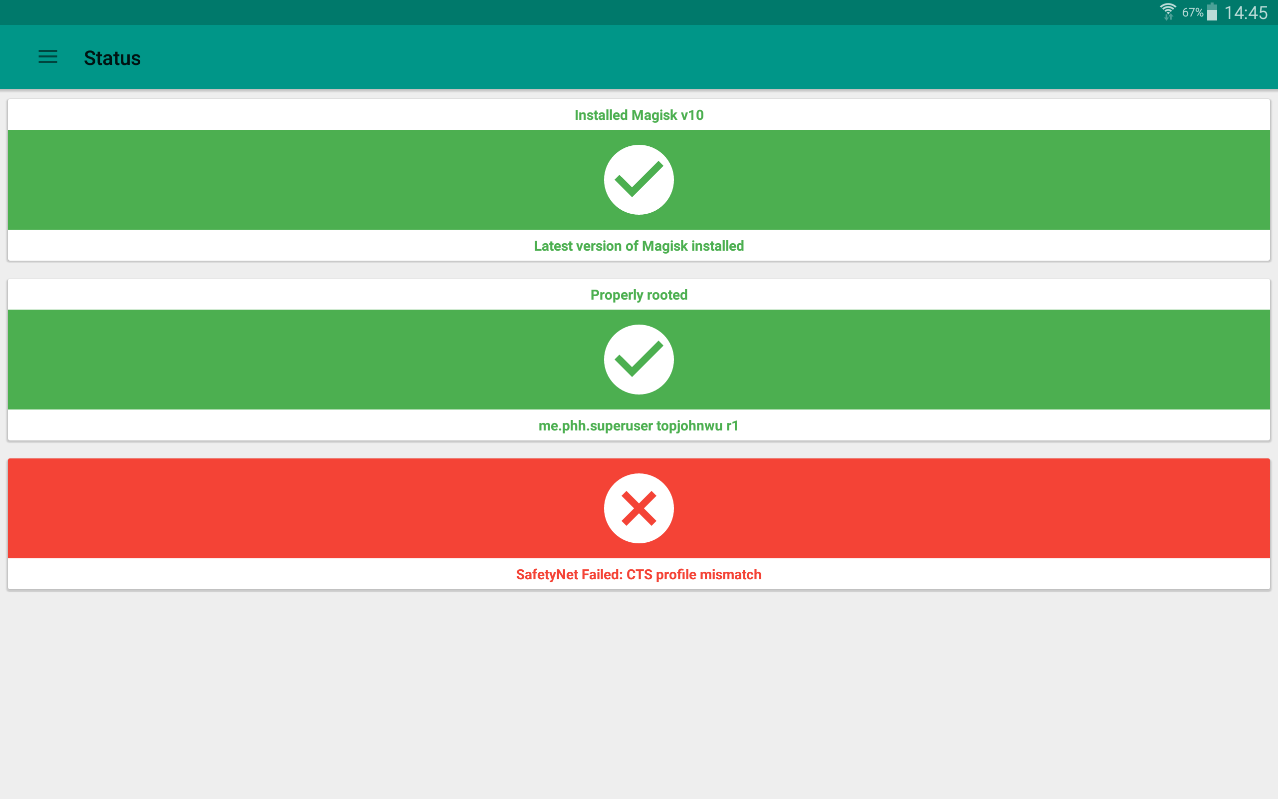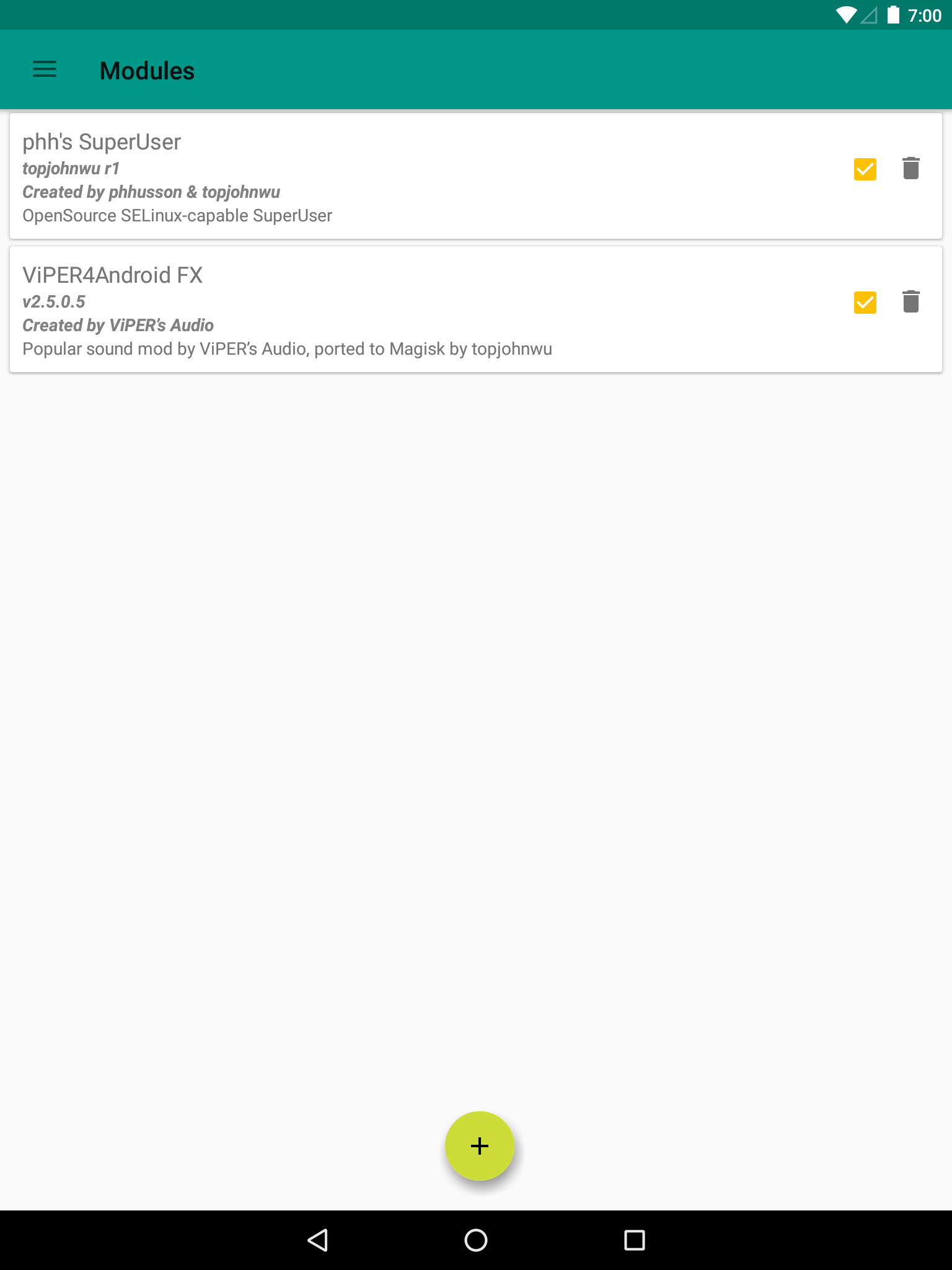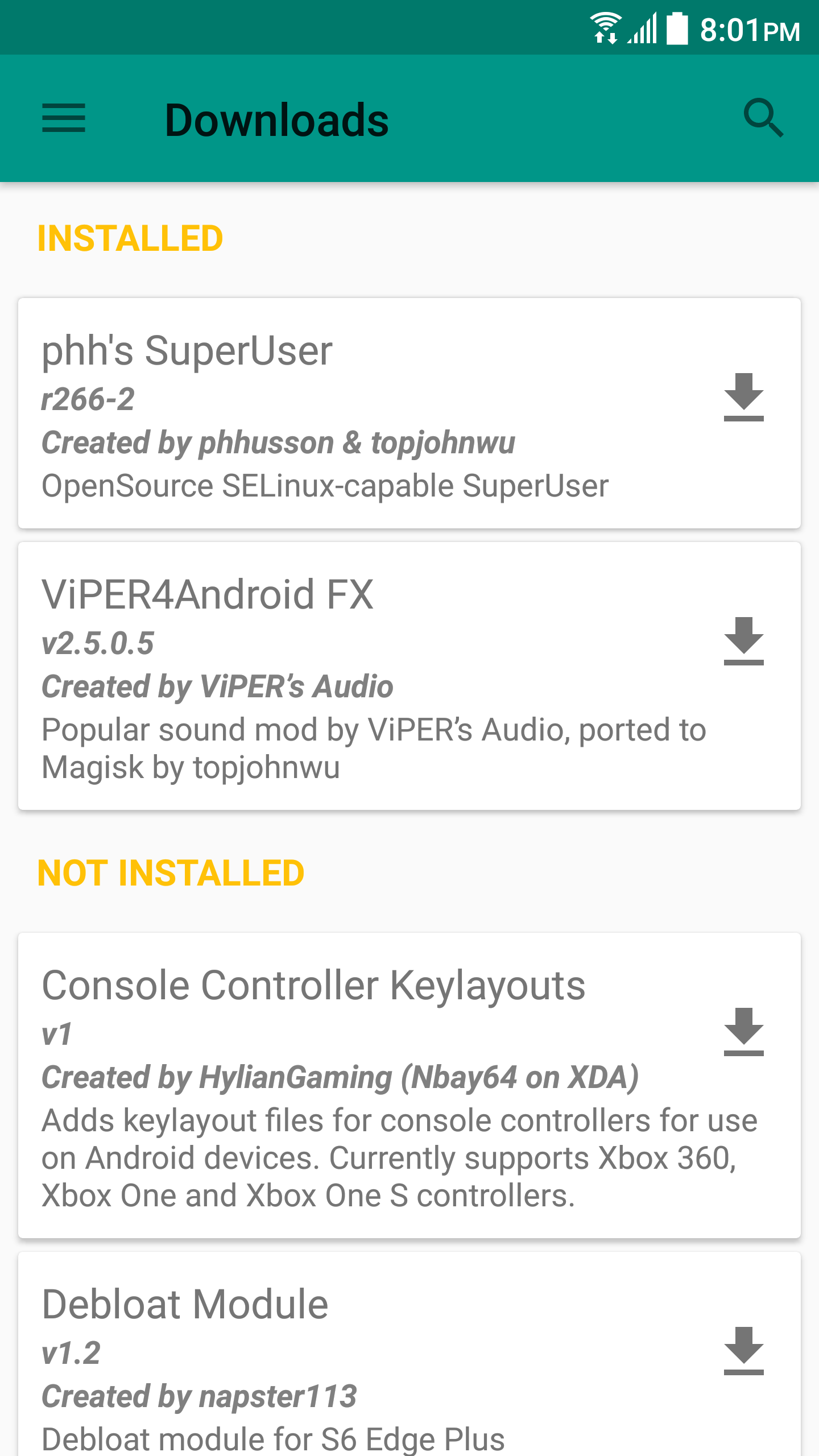 Magisk XDA Release: https://forum.xda-developers.com/showthread.php?t=3473445 Install, upgrade, manage, configure the Universal Systemless Interface - Magisk within a single app! Here are some key features: Status • Check Magisk Version and updates • Check root status • Check SafetyNet Install • Select boot image location • Advanced installation settings Superuser • Manage Superuser permissions • Toggle logging and notifications for each individual application Modules • Enable/disable, remove Magisk Module • Manually add Magisk modules by selecting Magisk Module zip files Downloads • Download Magisk Modules hosted on the Magisk Repo Magisk Hide • Select the app you want to hide Magisk from Settings • Toggle systemless host support • Toggle Busybox support • Toggle Magisk Hide • Tons of Superuser settings ... and much more to come!