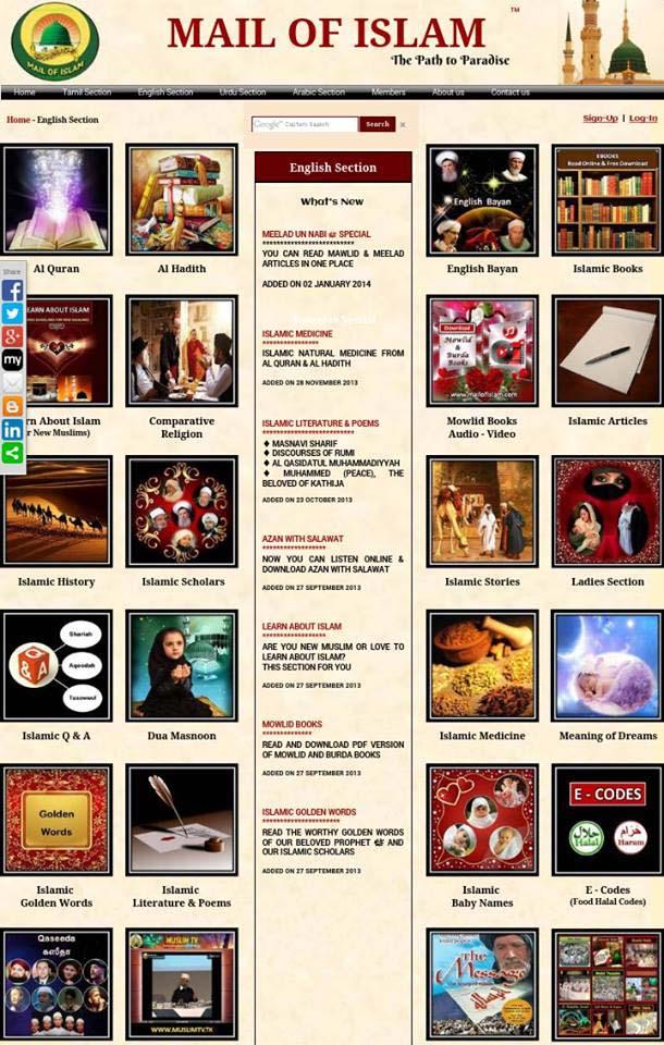 Mail of Islam™ is the multi-lingual, non-political, non- profit Islamic Da'wah service, founded in 2008 with wider vision of spreading the teachings of Islam, working for peace and love in the humanity and working for advancement of Muslim nations. Mail of Islam promotes the teachings of traditional Sunni Islam. Mail of Islam for Android brings you Holy Quran, Al Hadith, Islamic Books, Articles, Videos, Audios, Lectures, Islamic TV, Movies, Qaseeda, Islamic News, Comparative Religion, Sufism, Dream Interpretation and Dua Masnoon at one place in English, Tamil, Urdu and Arabic. மெயில் ஒப் இஸ்லாம் உலகின் மிகப்பெரிய தமிழ் மொழி இஸ்லாமிய இணையத்தளமாகும். இவ் இணையத்தளத்தில் அல் குர்ஆன், அல் ஹதீஸ், தமிழ் பயான்கள், இஸ்லாமிய நூல்கள், வரலாறுகள், கட்டுரைகள், மௌலித் நூல்கள், ஆடியோ, வீடியோ, ஸுபிஸம், துஆ மஸ்னூன், கனவின் விளக்கம், குழந்தை பெயர்கள், இஸ்லாமிய தொலைக்காட்சி, இஸ்லாமிய திரைப்படங்கள், உலக முஸ்லிம் செய்திகள் இன்னும் பல இஸ்லாமிய சேவைகளை நீங்கள் பெற்றுக்கொள்ளலாம்.
