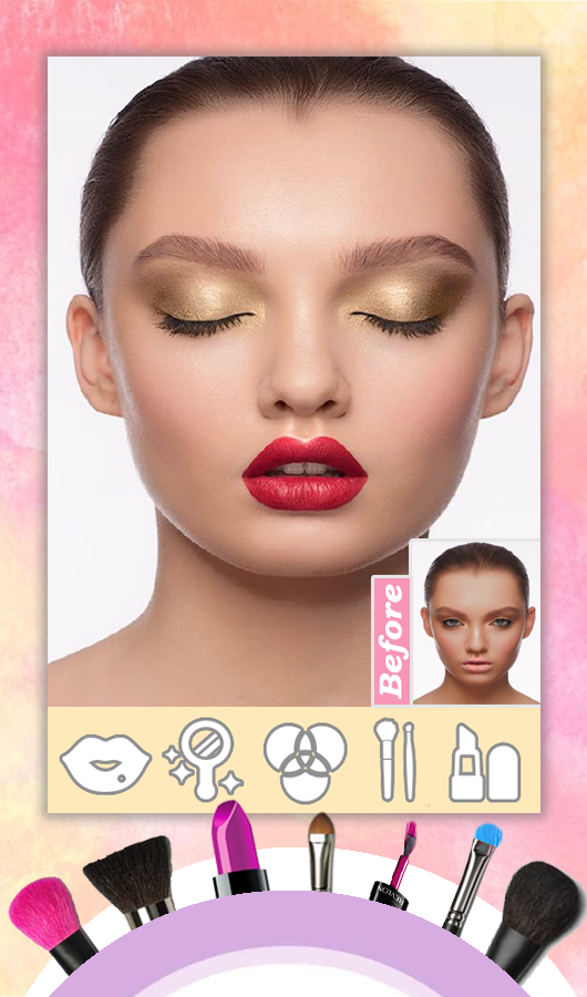 ◊ Face Makeup Beauty is the best makeover Makeup with mascara and eye Color and shadow for you eyes and lipstick for your lips and blusher for your beautiful face. Create your best makeup looks, hairstyles and change hair color, makeover in real-time on your photos. ◊ The smart recognition technology helps to make your makeup precisely and naturally fit, and make your photos more beautiful. ◊ Throw away the annoying beauty steps, we provide a key to automatically beautify the picture function, so that your photos are more beautiful natural, more realistic. ◊ Take a click of yourself, enhance it with beauty makeup options like face foundation to tune your face, lipstick and blushes, dark spot removal, wrinkles removal, pigmentation removal, removing blemishes using a blemishes remover, teeth and skin whitening, eye tuning and beauty accessories. ◊ Makeup app can beautify your image and change your own fashion style with just one touch up your personal photos with quick and powerful features and get great results. How To Use : ◊ Select a Photo where you want to apply Makeup. ◊ We will detect face features and let you fine tune face part identification with Eye Tools to identify Eye exactly for eye makeup, Cheek Identification tools, Lip Identification for lipstick. ◊ Change the Eye lashes from wide range of Eye Lashes for Eye Makeup. ◊ Change Color of Cheeks for Cheek Face Makeup. ◊ Change Lips color with Lipstick color selection for Lips makeup. ◊ Save and Share the Makeup faces with friends and family. Feature : ◊ Image size adjustment Like; Rotate,Zoom in-out,Flip ◊ Lot of customized magic effects. Like; Brightness, Contrast, Saturation, Blur,Temperature,Shadows/Highlights, Crop, Focus ◊ Hair Band are used to make your hair more beautiful and stylish. ◊ Flawless Skin & Face Editor ◊ Remove blemishes, Teeth Whitening and skin Whitening ◊ Change eye color lens to make your eye more beautiful and more stylish with new eye color lens. ◊ Eye lashes collection is used to make your eyes more stylish and give new attractive look of your eyes ◊ Hair style change function is used to change your hairstyle and hair color to create your ordinary photo more beautiful. ◊ Fun Stickers like mustache and Glasses or others can be easily placed only ◊ Add text on photo ◊ Save or Share Image to social network via social media and Surprise your friends