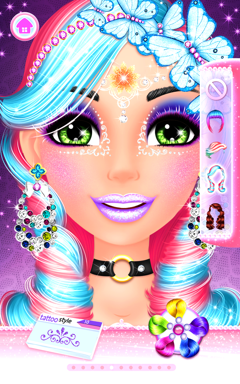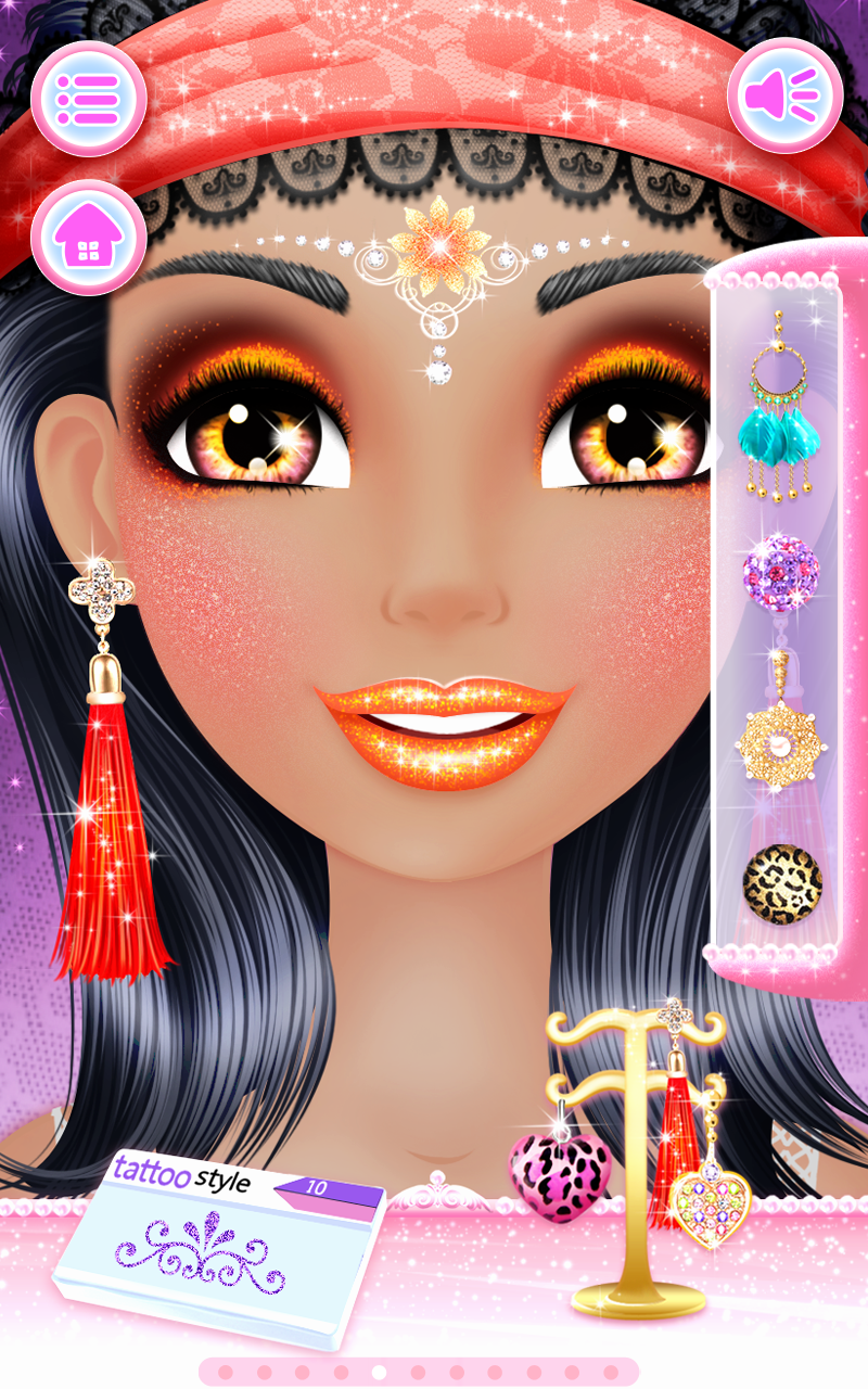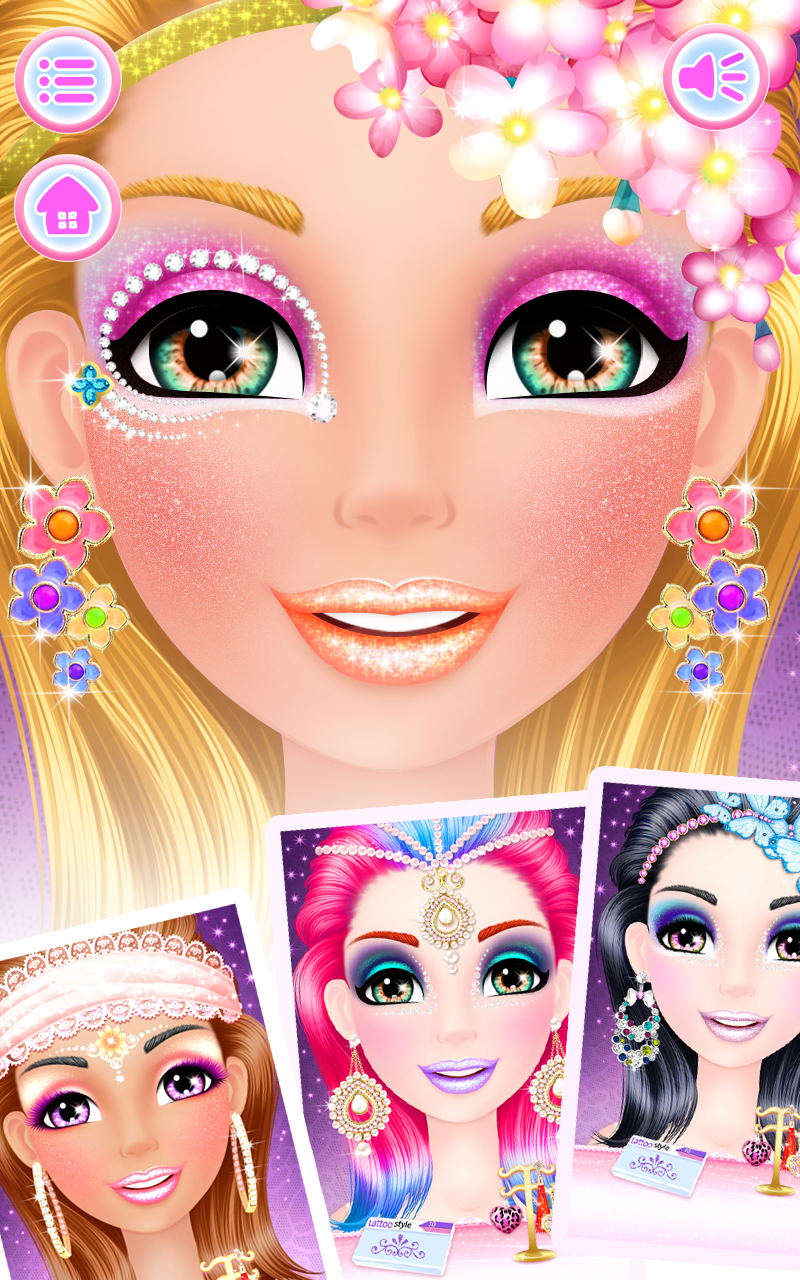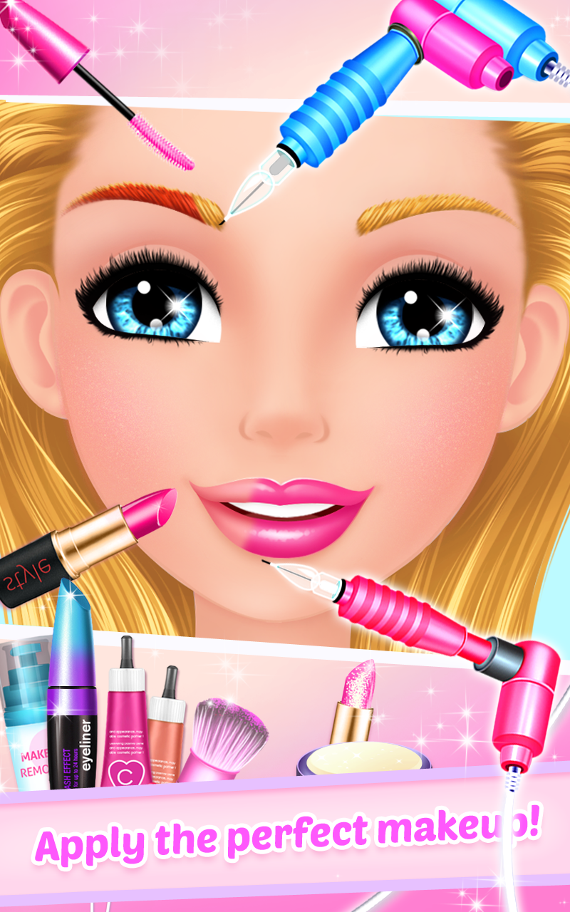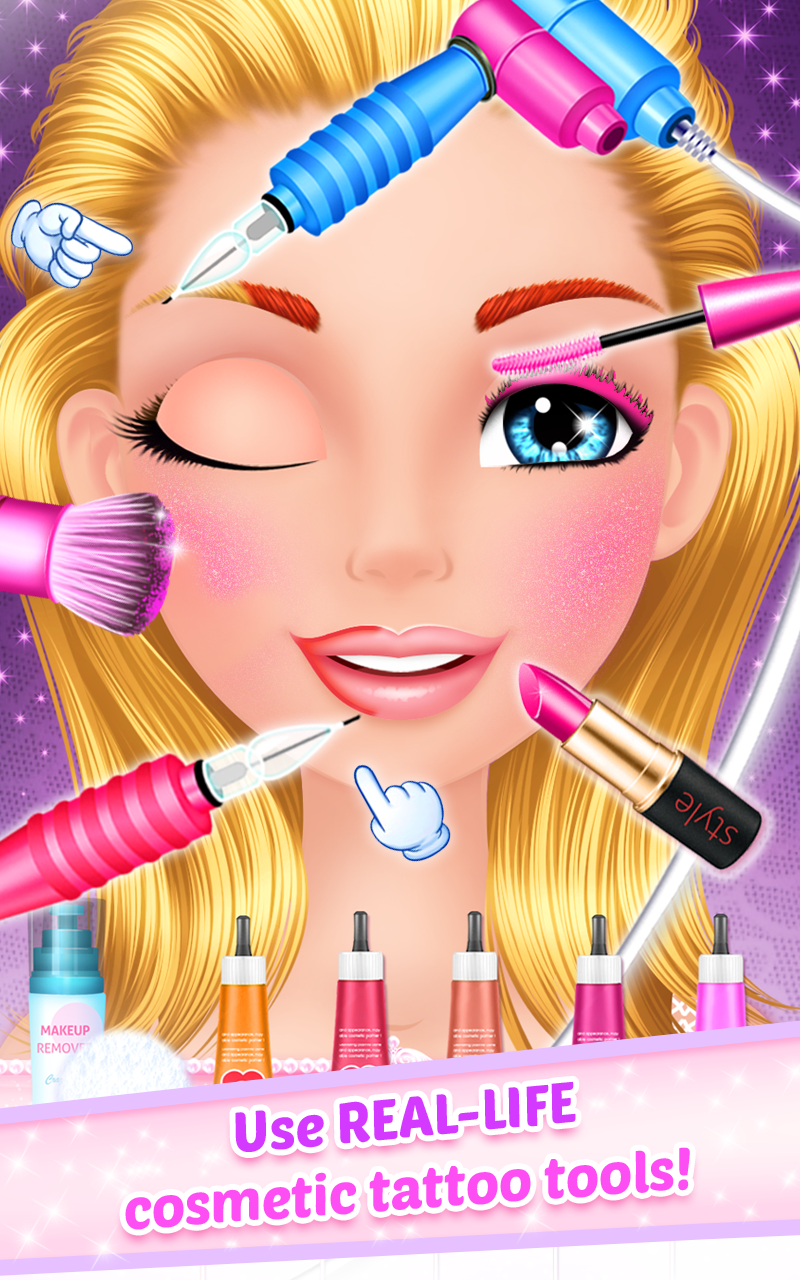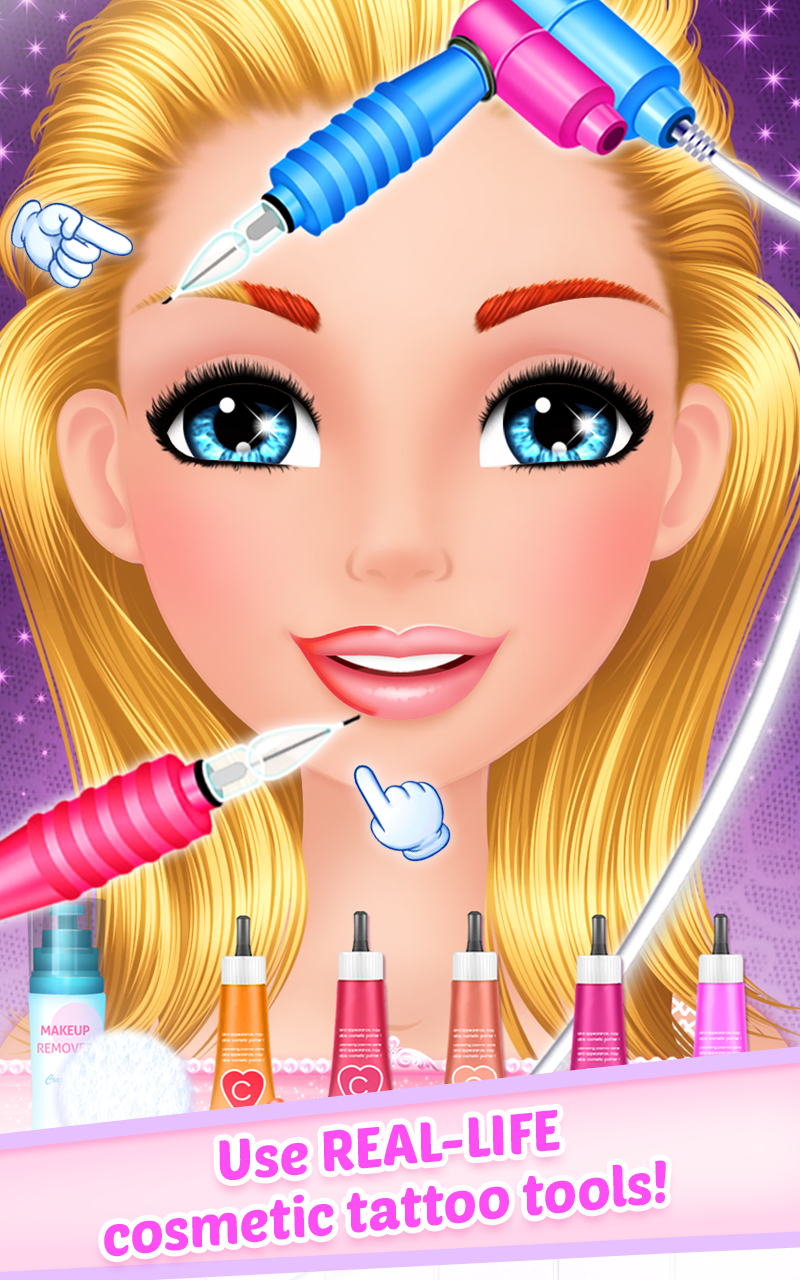 Welcome to Makeup Salon : Diva ! Have you ever wondered what it takes to make a girl look like she just left a makeup salon? Well... you can't imagine how easy this can be having the right beauty tools and a skilled makeup artist – yes, that’s you! You’ll be thrilled about doing makeup like a pro using real-life cosmetic salon tattoo machines for lips and eyebrows tattoo. Is all about how talented you are in giving this cute girl a princess celebrity look. You can create glamorous salon makeup styles using professional cosmetics and makeup products like lipstick, eyeshadows, eyeliners, blushes, false lashes, contact lens, face henna designs and many accessories like fancy earrings, and fashionable hair brides. Create a cool makeup salon look perfect for a celebrity! If fashion is your passion, and playing makeup and facial games is what you like the most, than you better try this beauty salon game as here you'll find a combination of them all to create a glamorous look. After playing this girl game we can assure you that you will know much more about style and diva looks as you had known before, even more you'll get to enrich your knowledge about fashion which can help you get new ideas about glam, style and makeup salons and fashion look in general. This surely is one of the free girls game which you'll love sharing with other little girls. One of the beautiful kids games not only for teenage girls, but also for kindergarten children, they can explore their creativity and imagination in a friendly, casual children game. Enjoy playing! Here are some of the features this fun girl game has: - Use real-life cosmetic tattoo machine. - Tons of lipstick, eyeshadows and eyeliners, fashion accessories and many more to create the perfect beauty salon look. - High quality graphics and sound. - All the makeup salon tools you could use!