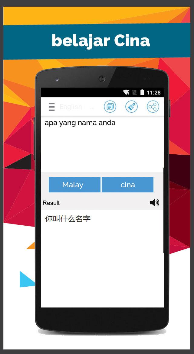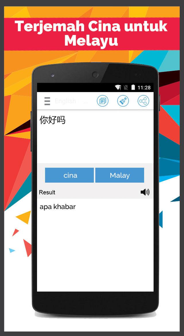 Free Malay Chinese Translator Translate text, word or sentence from Malay to Chinese or from Chinese to Malay language. You can use this apps as a Malay to Chinese dictionary or Chinese to Malay Dictionary too. Uses of Malay Chinese Translator are following: - Malay Chinese Translator - Chinese Malay Translator - Simple User Interface(Easy to use for Translator) - Listen translated text, sentence in Chinese or Malay - Used as a Malay to Chinese dictionary or Chinese to Malay Dictionary. - Social Media - Easily share with Friends and Family.