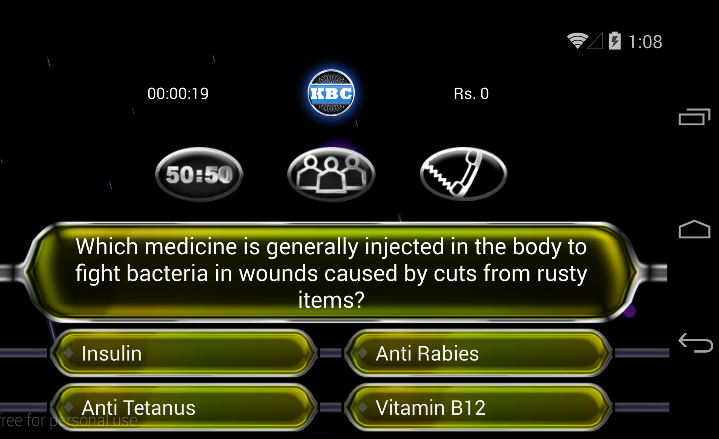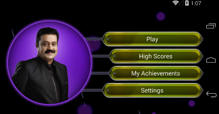 This is not an official game. The purpose of this game is to enable practicing for the show. This game is in no way affiliated to Asianet channel nor to Ningalkum Akam Kodeeswaran TV show. This is a game where you can practice your quizzing skills and general knowledge skills. Includes Suresh Gopi's voice over effects and real questions from the TV show. Win upto 1 Crore Rs by using 3 lifelines ; fifty - fifty, audience poll and phone a friend. The app chooses 15 questions randomly from a question bank of 10,000 questions each time you start the game. This is a game simulation for the malayalam version of the popular game show Kaun Banega Crorepathi (adapted from the UK TV show "Who wants to be a millionaire")