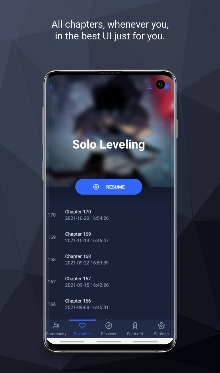 - Resume: resume reading the manga from the chapter where you left with the press of a button pressed