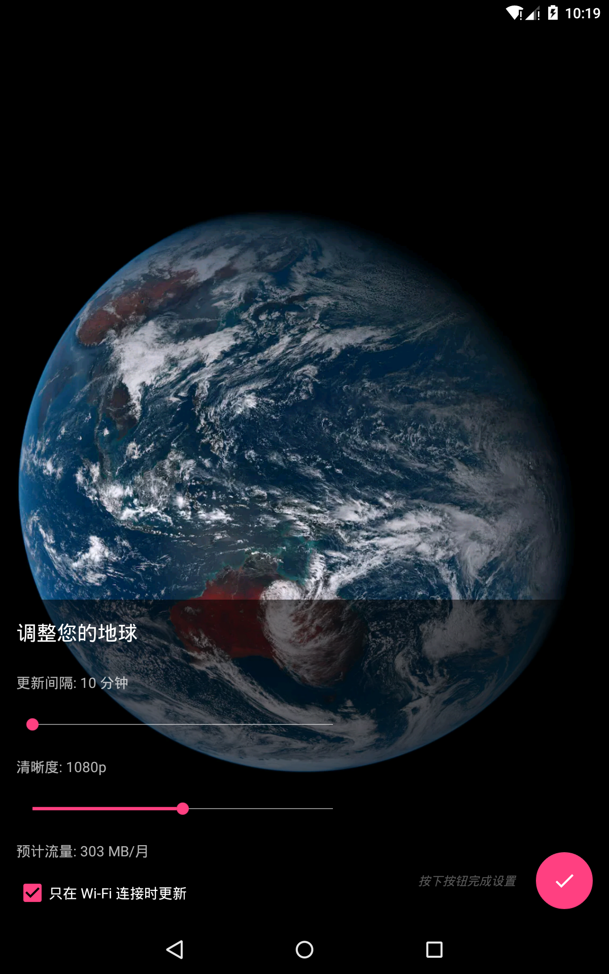A Live Wallpaper with LIVE earth taken from satellite just 30 minutes ago.
