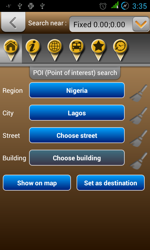 This application turns your Android device into a GPS navigator with offline maps. You can search easily locations in Nigeria and you can add them to your route. Discover interesting places near you: accommodation, parking, restaurants, bars, clubs, cinemas, theatres, auto services, shops, parks, schools, hospitals, sport areas. It includes detailed maps of the biggest cities in Nigeria: Lagos, Kano, Ibadan, Kaduna, Port Harcourt, Benin City, Maiduguri, Zaria, Aba, Ilorin, Jos, Ogbomosho, Oyo, Enugu, Abeokuta, Onitsha, Warri, Sokoto, Okene, Calabar and others. This application is based on Osmand project under the GNU GPLv3 license and uses high quality data from OSM.