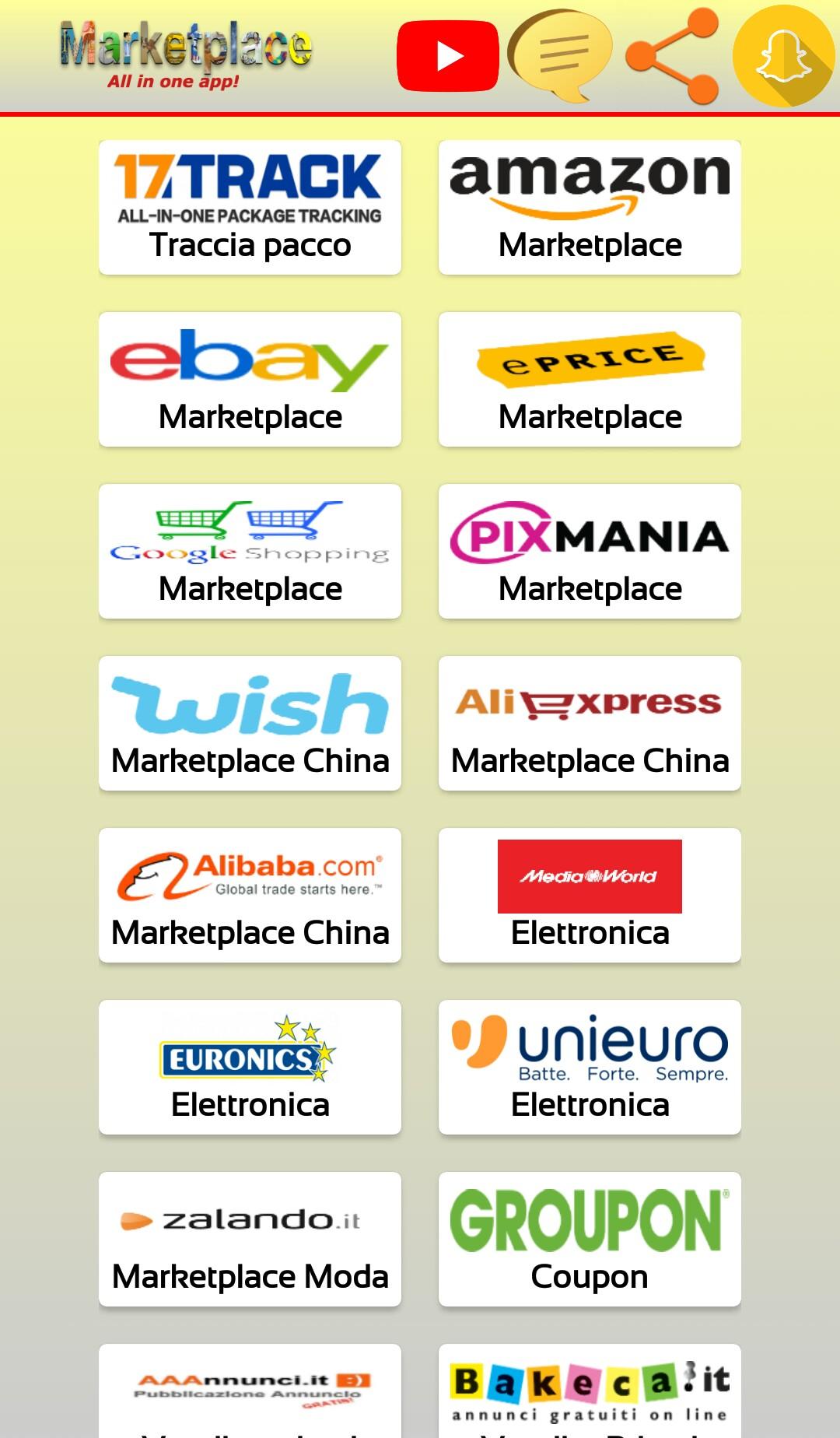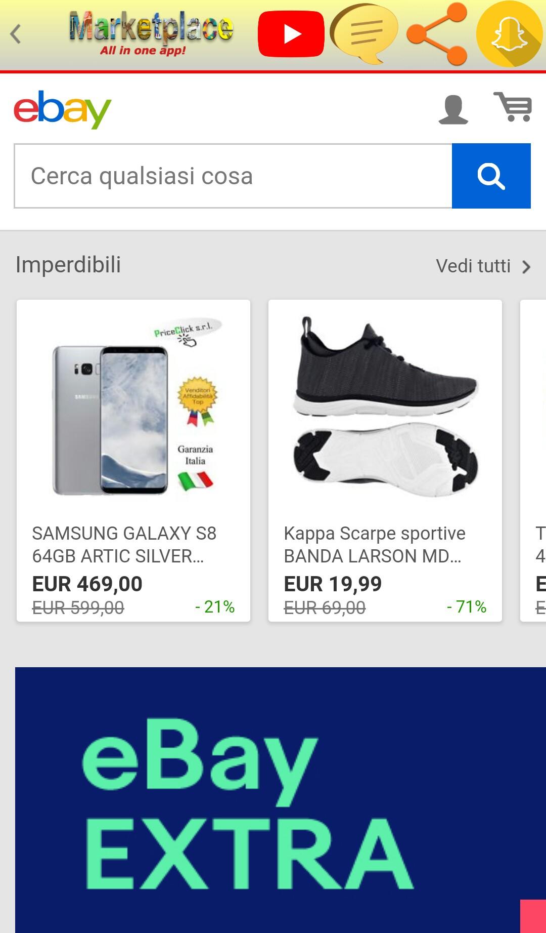 Novità! Se acquisti dalla nostra app nel Marketplace Amazon,ti ritorniamo il 2% sull'importo che hai speso! Marketplace Italia è la nuova app che ti fa risparmiare un mondo di spazio! Con pochi MB avrai a disposizione tantissime app in un unica app! -Risparmia MB nel tuo smartphone -Tantissimi Marketplace in una sola app -Acquista su Amazon e ti ritorniamo il 2% sull'importo speso -Effettua il login e rimani sempre collegato -Nessun importo minimo chiesto -Controlla il tuo saldo direttamente dall'app -Semplici passi per ricevere le tue commissioni -Fai il login una volta e rimani memorizzato nei tuoi marketplace -Marketplace,voli,coupon,acquisti vario genere tutto in una app -Monitorizza facilmente il tuoi articoli dei vari store -Traccia facilmente il tuo pacco -Trovi i migliori Marketplace: Amazon, Ebay, Aliexpress, Eprice, Zalando, Groupon, Sconton ecc.. - In arrivo: You Tube, Facebook store e tanto altro ancora. -Marketplace sempre in aggiornamento Manca il tuo marketplace preferito? Scrivici e te lo aggiungiamo per te! Alcune esempi di market inseriti di successo: Amazon,Ebay,Eprice,Subito.it,Zalando,Wish,siti di annunci privati, ricerca voli, hotel e tanto altro!