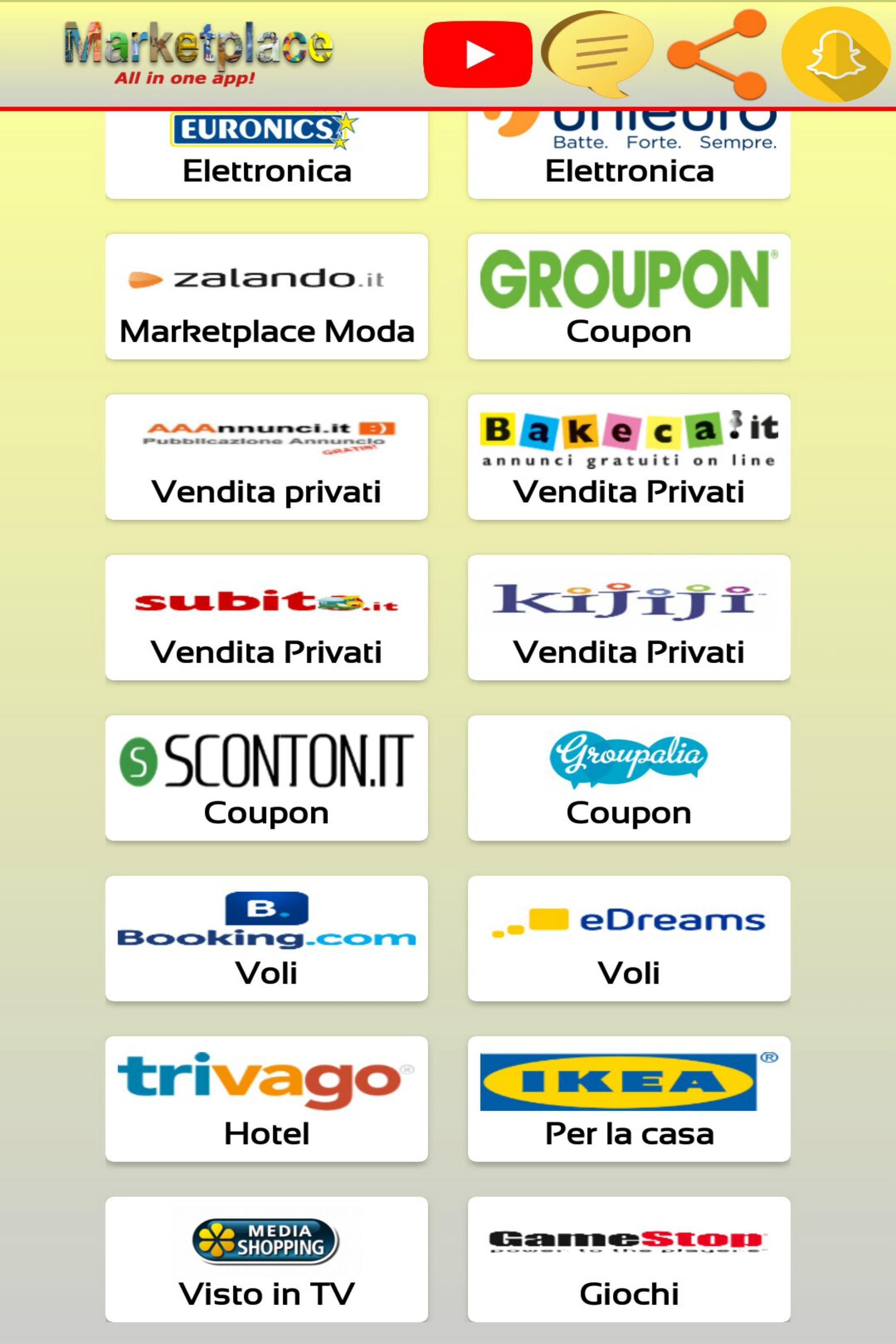 Marketplace ITA (Package Name: multi.marketplace) is developed by AppBuild and the latest version of Marketplace Italia 9.1 was updated on September 25, 2019. Marketplace Italia is in the category of Shopping. You can check all apps from the developer of Marketplace Italia and find 6 alternative apps to Marketplace Italia on Android. Currently this app is for free. This app can be downloaded on Android 4.1+ on APKFab or Google Play. All APK/XAPK files on APKFab.com are original and 100% safe with fast download.