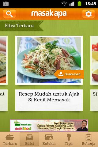 Masak Apa (Package Name: com.detik.masakapa) is developed by PT. Agranet Multicitra Siberkom and the latest version of Masak Apa 1.4.5 was updated on June 10, 2016. Masak Apa is in the category of Lifestyle. You can check all apps from the developer of Masak Apa. Currently this app is for free. This app can be downloaded on Android 4.0.3+ on APKFab or Google Play. All APK/XAPK files on APKFab.com are original and 100% safe with fast download.