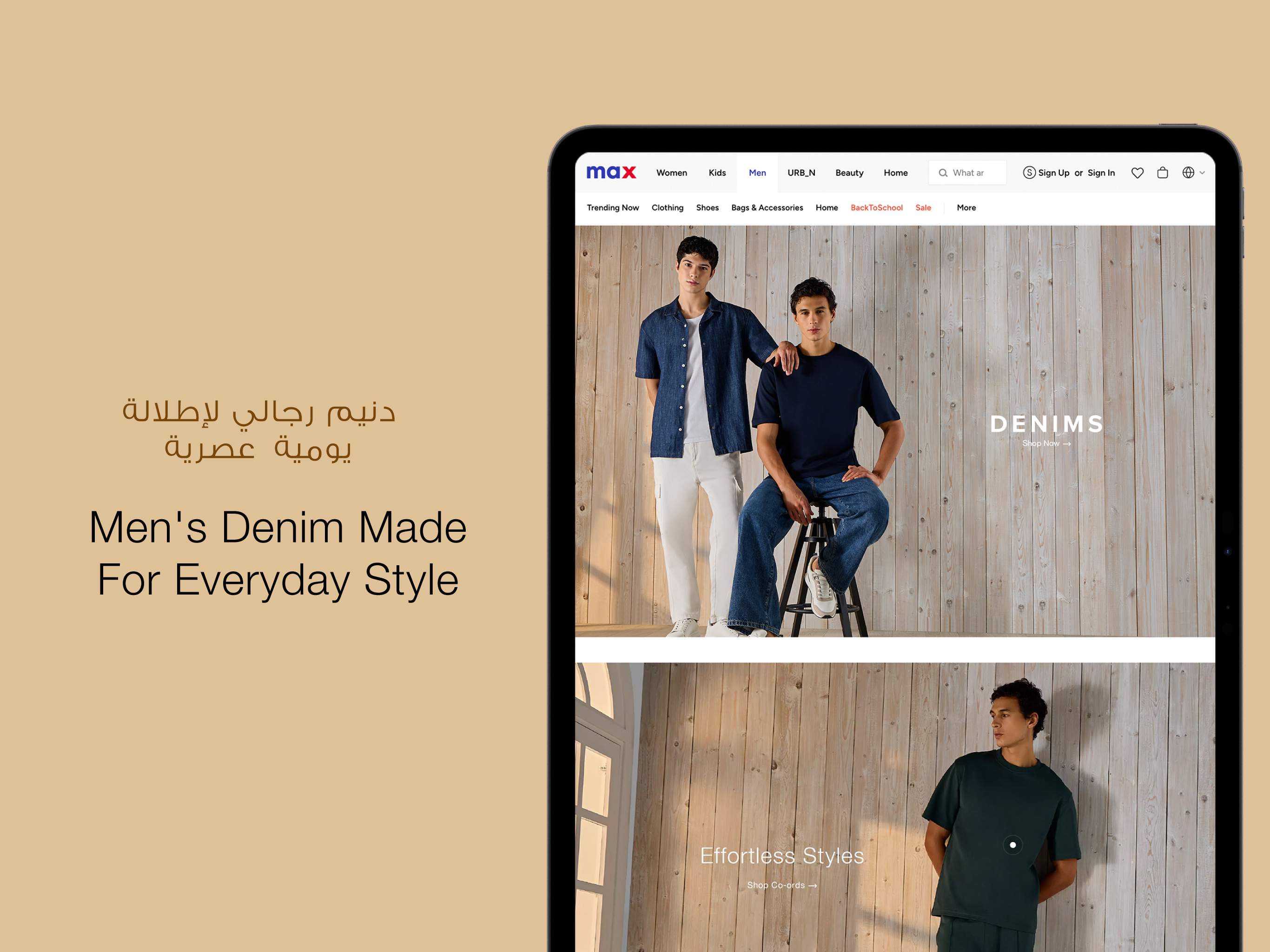 ماكس فاشن يقدم لكم كل ما تحتاجونه لإطلالة يومية، تيشيرتات، بولو، كارجو، دنيم، وقمصان كاجوال بأسعار تناسب الجميع.