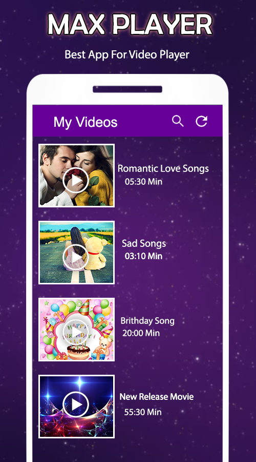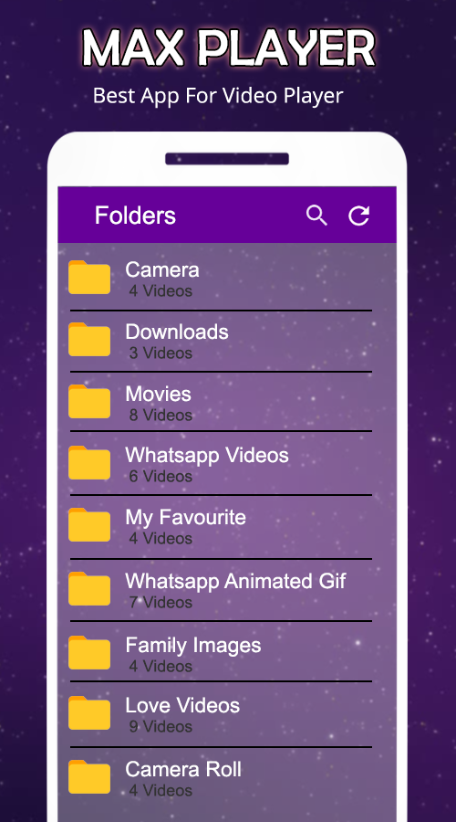 Max video player is the easiest phone video player, has a powerful video decoding capabilities to easily support you play almost all video files stored on your phone.