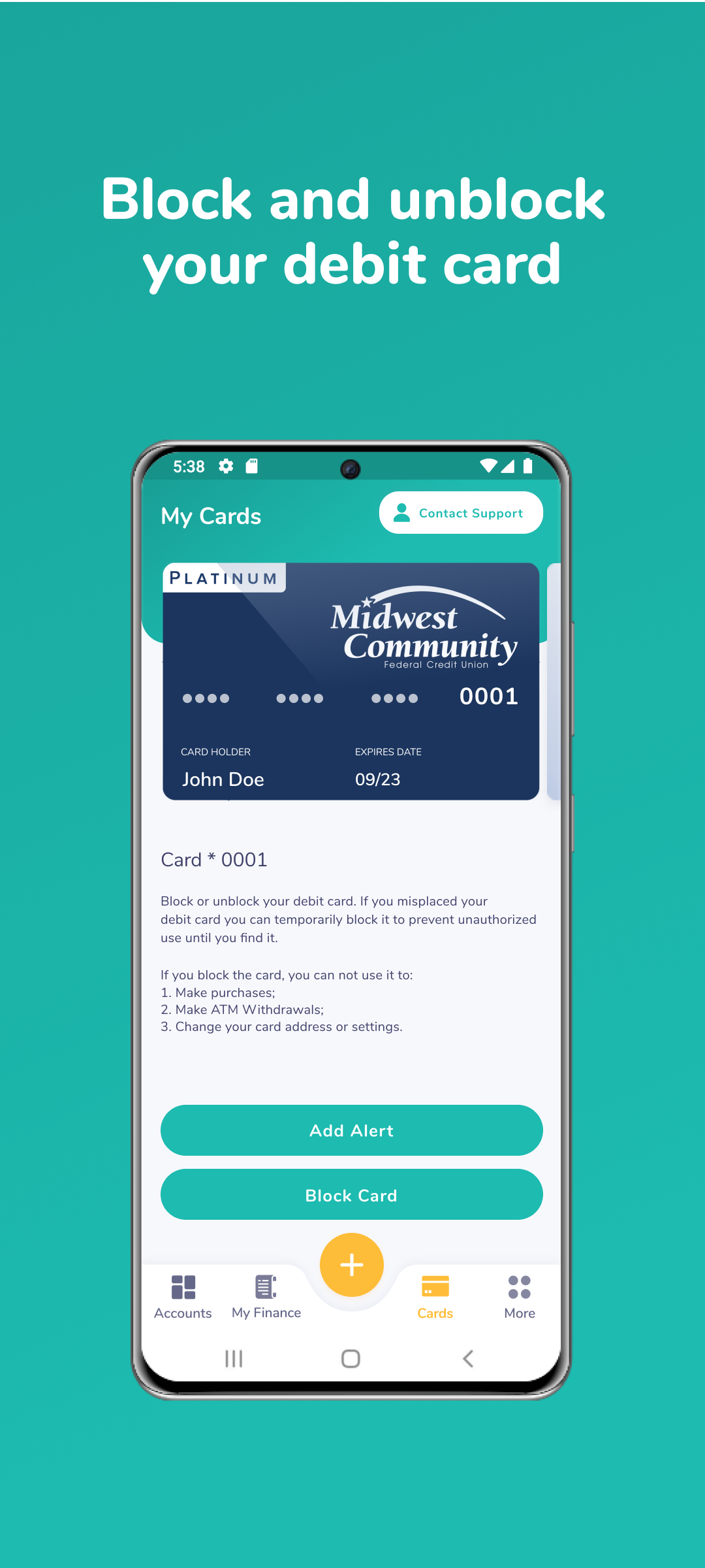 With the Midwest Community Mobile Banking App, you can safely and securely access your accounts anytime, anywhere. Our mobile app is FREE and allows you to: • Pay bills or pay your friends • Deposit checks • View your account balance(s) • View account activity • Transfer funds • Locate a branch or ATM • Contact our Member Service Security Security is our priority. Rest assured that your personal information is kept safe! Contact Us You can contact us if you have any questions about the Midwest Community Mobile App.