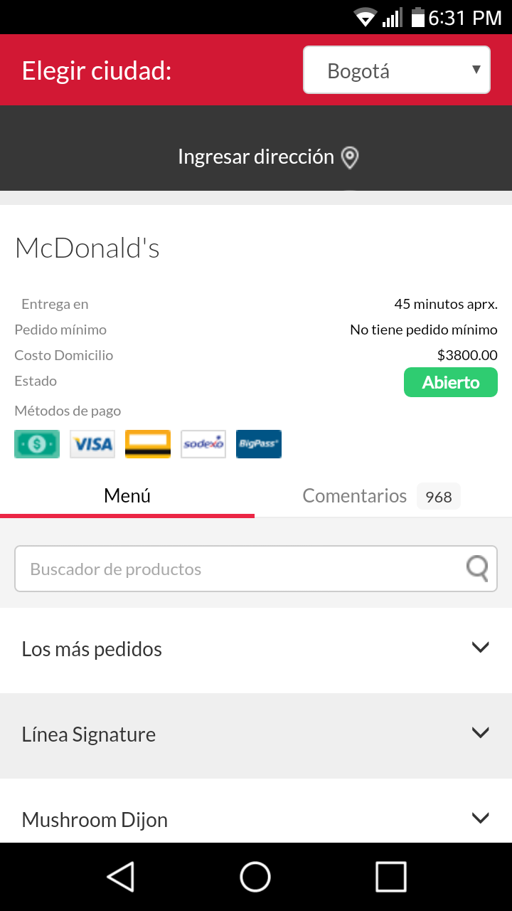 McDonald's Domicilios Colombia