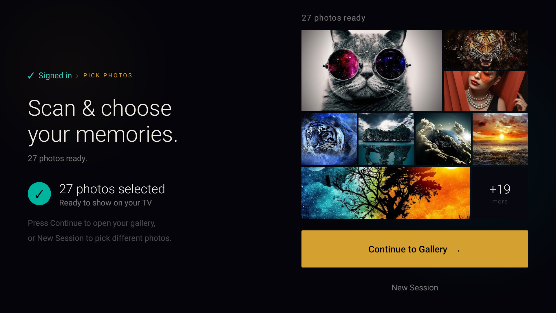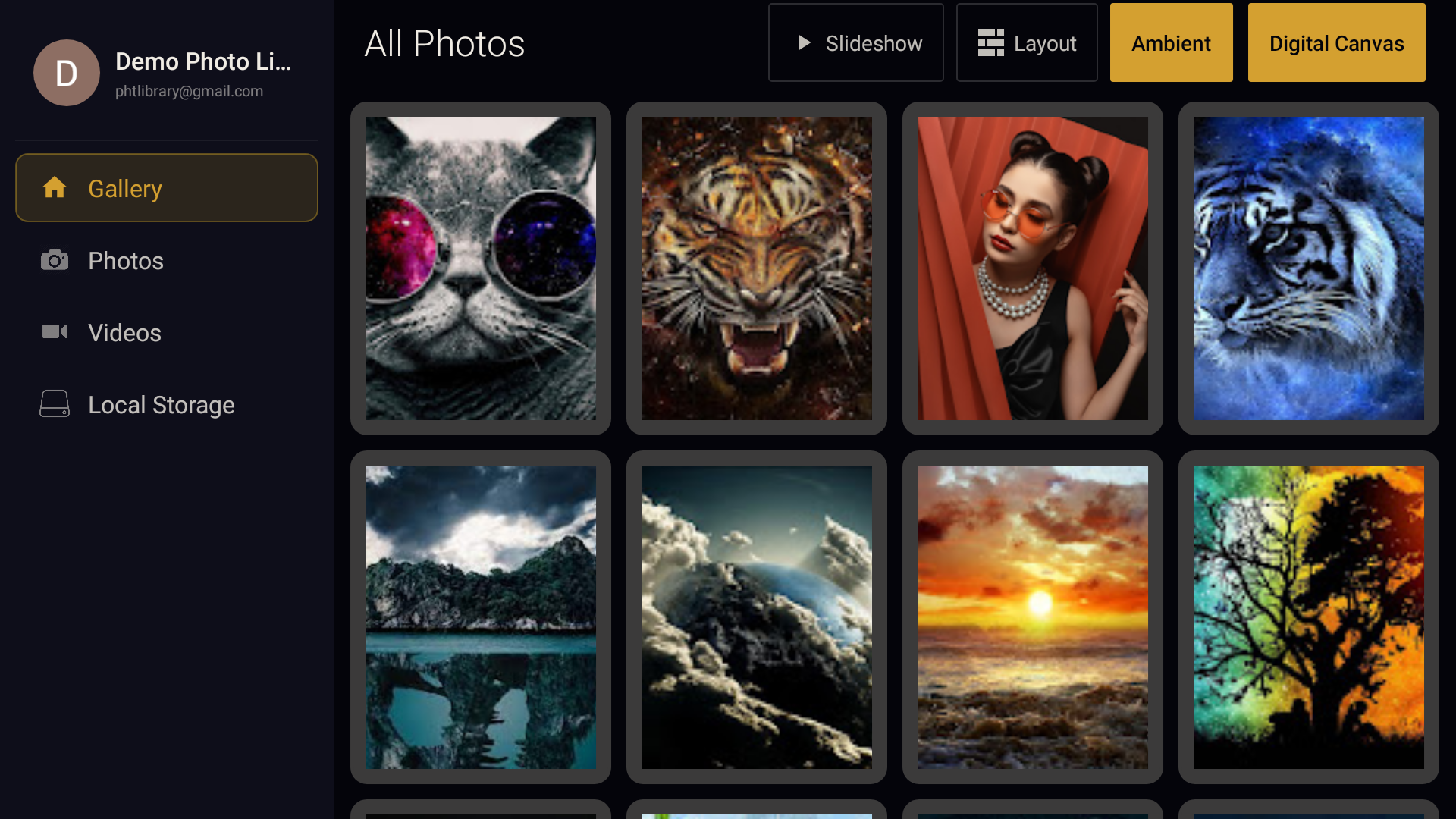 PixGallery – Photo Frame & Slideshow for Android TV Turn your Android TV into a stunning digital photo frame — showing your Google Photos in cinematic quality, all from your couch. PixGallery is the most beautiful way to display your memories on the big screen. Scan a QR code on your phone, pick your photos, and within seconds your TV transforms into a living gallery. No complicated setup. No cables. Just your memories, beautifully displayed. ⭐ What Makes PixGallery Different Most photo apps just show a list. PixGallery was built from the ground up for the 10-foot TV experience — lean-back navigation, remote-friendly controls, and cinematic presentation modes that make every photo look like art. 🎬 Slideshow Studio 12 cinematic transitions including Ken Burns, Crossfade, Flip, Zoom, Glitch and more. Set your own speed. Your photos play like a movie. (Fade & Slide free — 10 transitions PRO) 🖼️ Digital Canvas — 24 Photo Frame Themes Transform your TV into a gallery wall. Choose from Museum Mosaic, Portrait, Filmstrip, Polaroid Wall, Lightbox, Noir, Lux Frame and 17 more premium layouts. Your TV becomes art when you're not watching it. (3 themes free — 21 themes PRO) ✦ Ambient Mode Full-screen Ken Burns effect with clock overlay, date display, and On This Day memories. The most beautiful screensaver your TV has ever had. ✦ Local & Network Media Support 🚀 USB Storage Support – Browse and view photos and videos directly from connected USB drives. NAS & Network Browsing – Access media from your local network (SMB/NAS servers). Directory-Based Navigation – Explore folders just like a file browser. Photo & Video Playback – Seamlessly open images and play videos from USB and network storage. Unified Media Experience – View Google Photos, USB media, and NAS content all in one place. 🔐 Privacy-First Google Photos Uses the official Google Photos Picker API. You choose exactly which photos to share — your full library is never accessed. Disconnect anytime from the Profile screen. 📱 How It Works Open PixGallery on your Android TV A QR code appears on screen — scan it with your phone Pick exactly the photos you want from Google Photos Your TV gallery loads instantly — sit back and enjoy 🆓 Free Includes ✓ Unlimited Google Photos selection ✓ 3 Slideshow transitions ✓ 3 Digital Canvas themes ✓ Ambient Mode & Screensaver ✓ Local Storage browsing ✓ Local storage playback ⭐ PRO Unlocks Everything ✓ All 12 cinematic transitions ✓ All 24 Digital Canvas themes ✓ One-time lifetime purchase — yours forever Perfect for: Android TV • Google TV • Fire TV Stick • Smart TV with Android • Tablets • Large screen displays • Digital photo frames • Home screensavers • Family memory walls Disclaimer PixGallery is an independent app and is not affiliated with or endorsed by Google LLC. It uses the official Google Photos Picker API to access only user-selected media. Google Photos is a trademark of Google LLC.