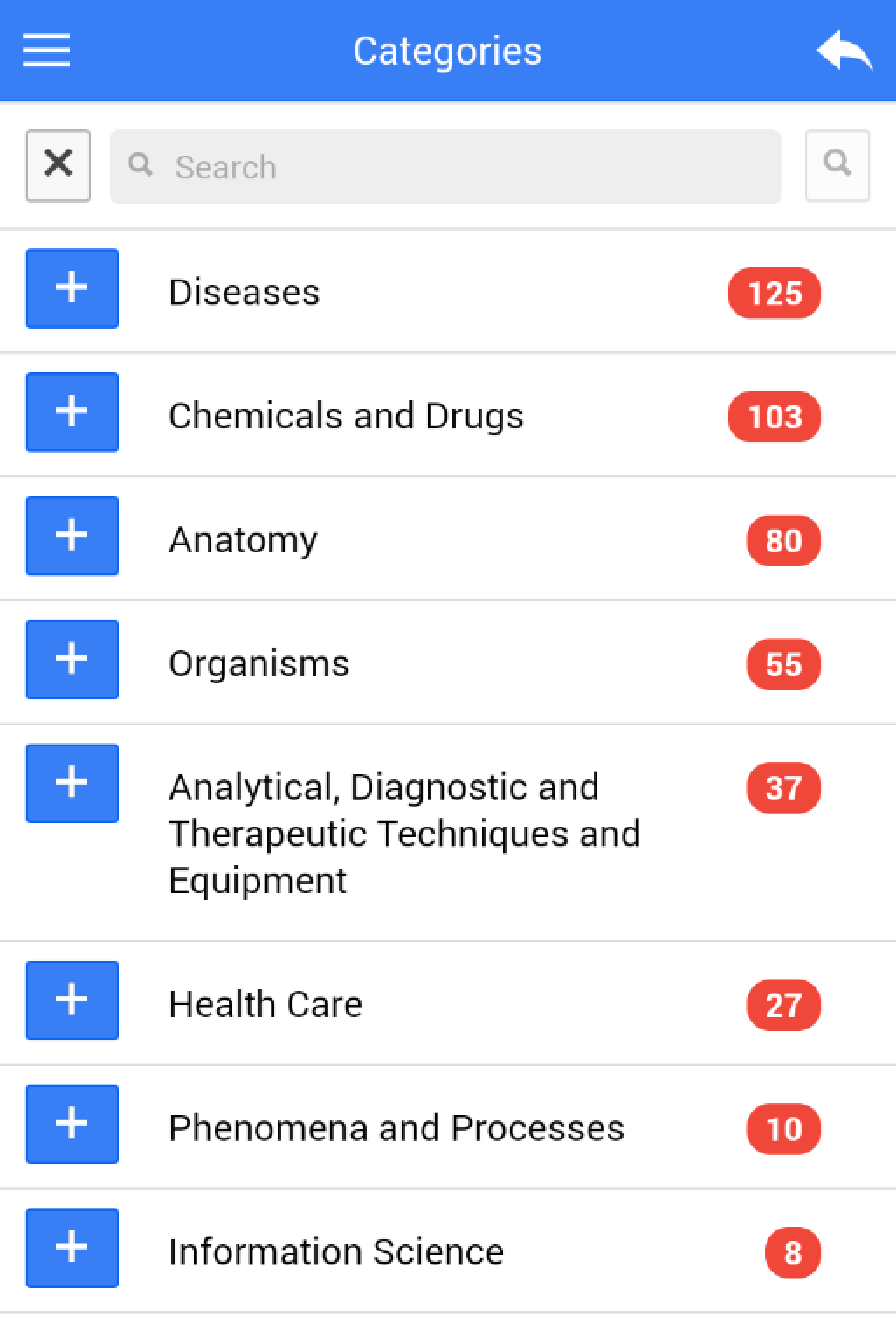 - ANATOMY: Animal Structures, Bacterial Structures, Body Regions, Cardiovascular System, Cells, Digestive System, Embryonic Structures, Endocrine System, Fluids and Secretions, Fungal Structures, Hemic and Immune Systems, Integumentary System, Musculoskeletal System, Nervous System, Plant Structures, Respiratory System, Sense Organs, Stomatognathic System, Tissues, Urogenital System, Viral Structures, ...