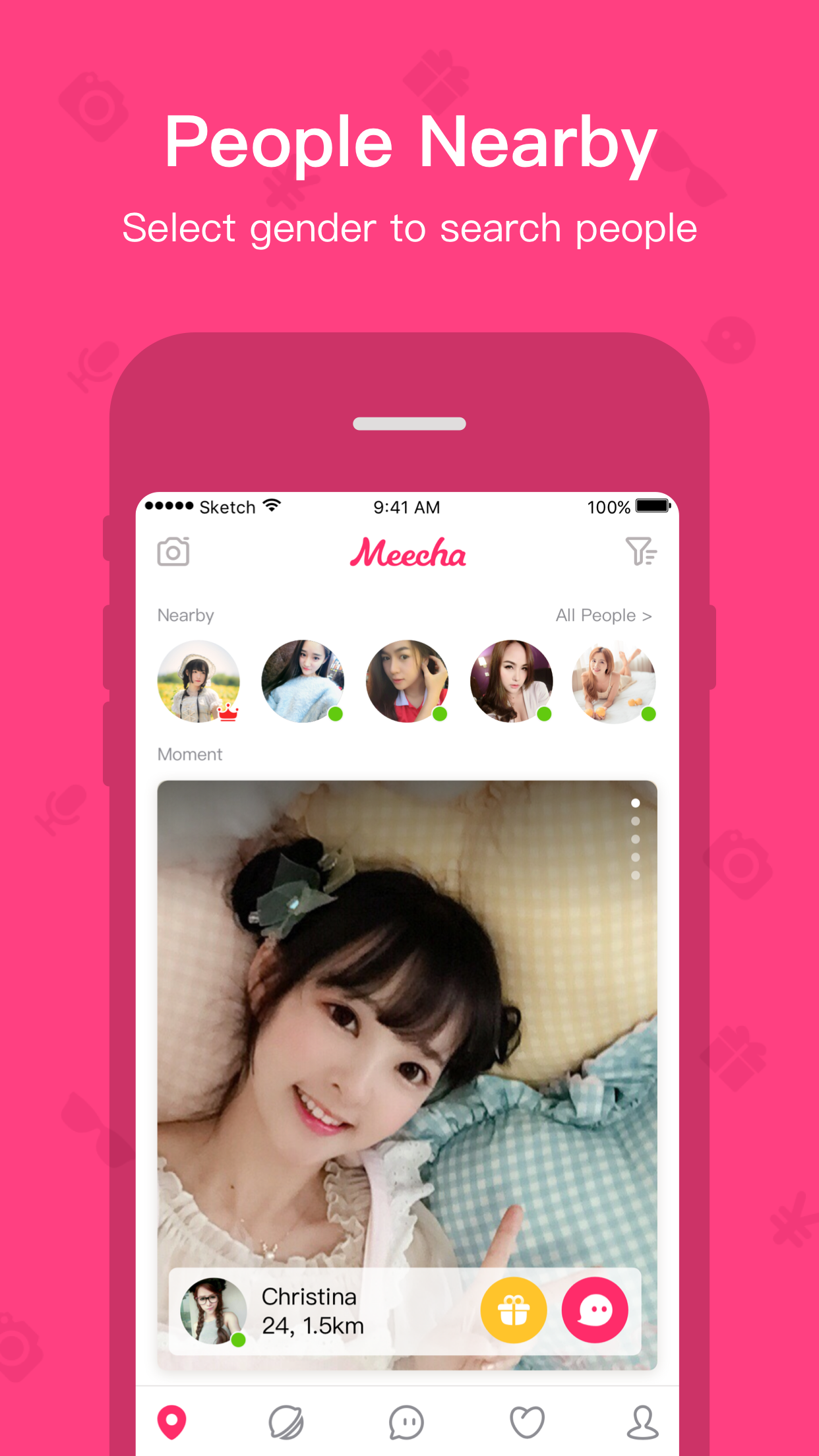 Meecha (Package Name: me.meecha) is developed by Chatcat Inc and the latest version of Meecha - Meet People Nearby 4.4.1 was updated on April 18, 2018. Meecha - Meet People Nearby is in the category of Dating. You can check all apps from the developer of Meecha - Meet People Nearby. Currently this app is for free. This app can be downloaded on Android 4.0.3+ on APKFab or Google Play. All APK/XAPK files on APKFab.com are original and 100% safe with fast download.