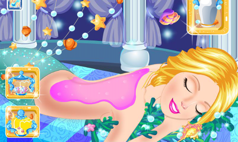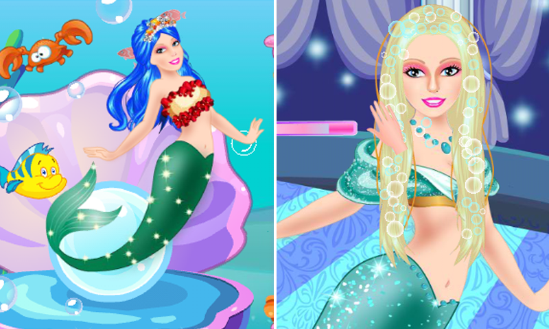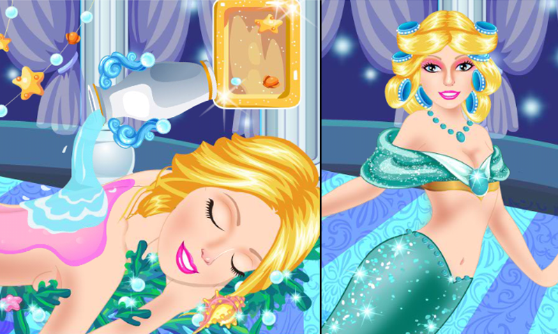 This game introduces you in the amazing water world, where you'll met the most beautiful mermaid princess. And now she reveals her beauty secrets to you. In the first part of the game you'll see how she relaxes at the spa salon. Then go through some simple hair care steps. In the third part of the game discover her amazing wardrobe and dress her up as you like. Now she looks gorgeous isn't it?