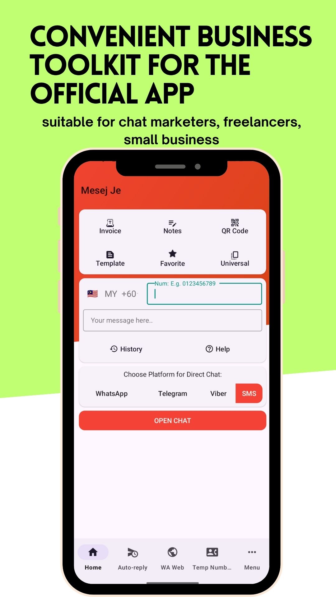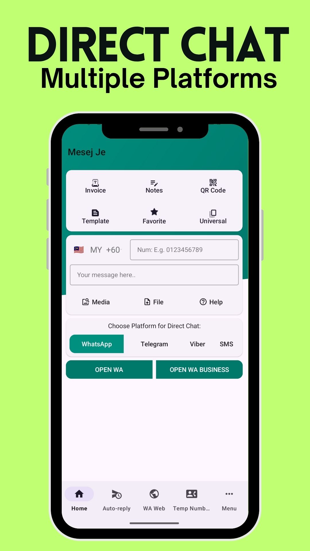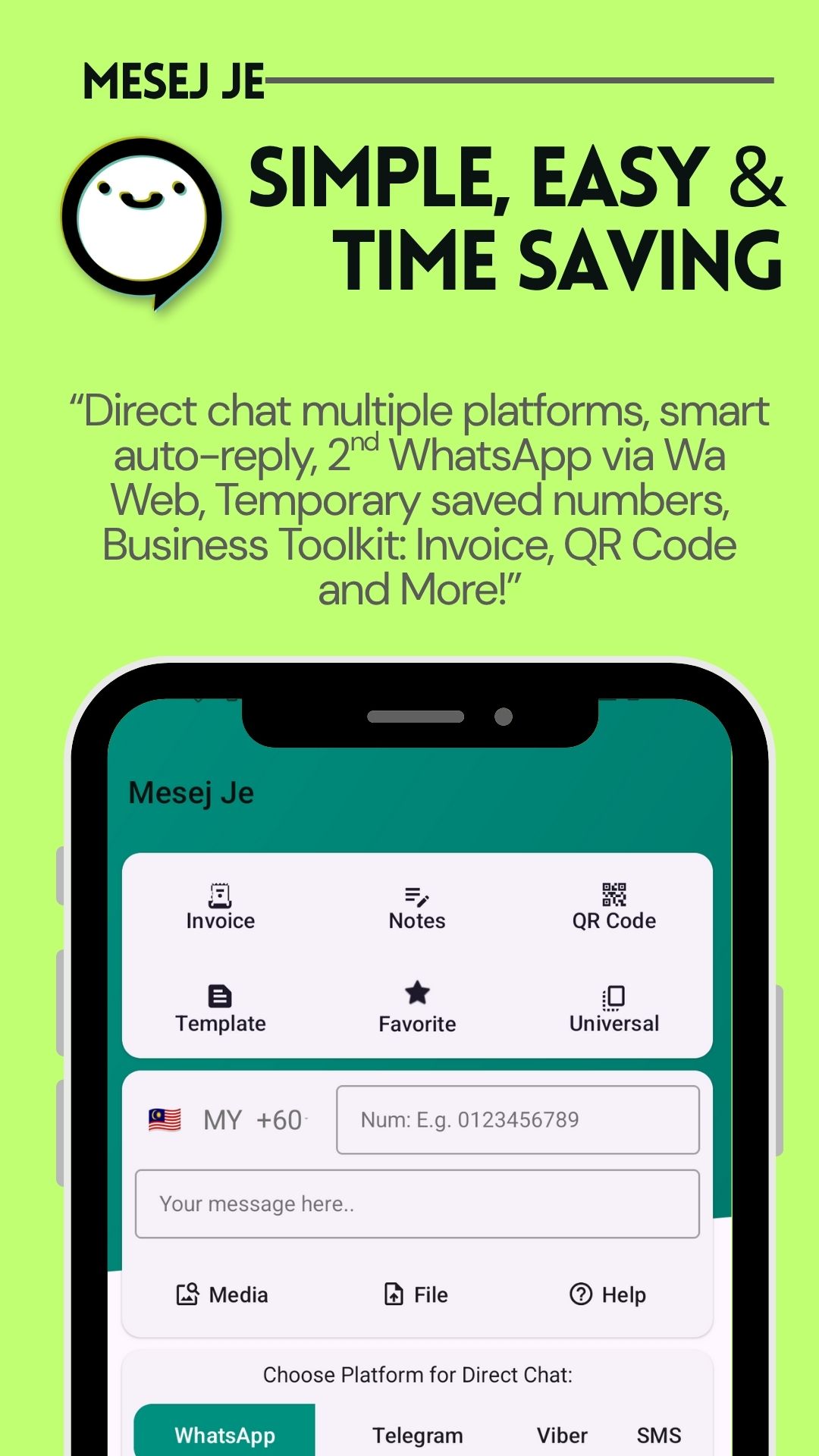 Ever had to save a contact just for a single chat message? Mesej Je ends that hassle. Instantly start a chat on **WhatsApp, Telegram, or Viber** without saving the number.