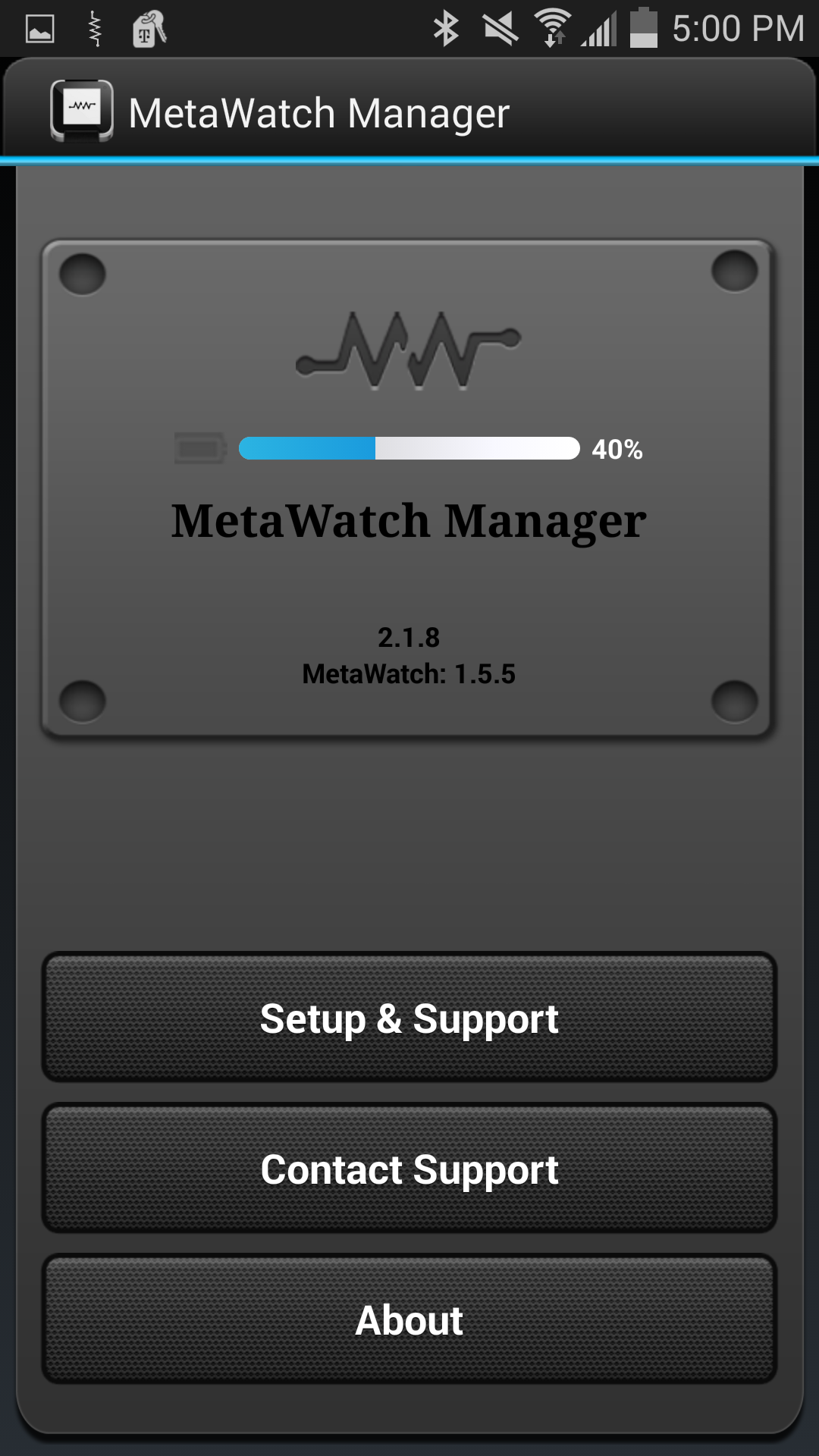 The MetaWatch™ Manger app (also known as MWM) connects your Android OS device to your MetaWatch smartwatch via Bluetooth wireless technology.