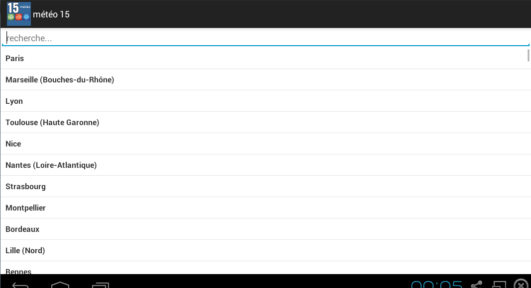 * Prévisions Météo France appli donne 15 jours Prévisions météo pour toutes les villes de France. Il ya toutes les villes comme Paris, Marsellie, Lyon et Toulouse. * Il s'agit de la taille plus pratique et moins que les autres applications de la météo à Google Play Store. La taille est inférieure à 1 Mo. * Prévisions météorologiques France est une application météo rare, en raison des capacités pour la météo et la température avec une période de 15 jours. * L'équipe de développeur efforts pour haute performance sur tous les téléphones Android et les tablettes. En outre, il offre une vue simple et l'utilisation pour les personnes de tous âges. * Pour toutes les tailles d'écran sont pris en charge. Il peut être utilisé en dessous de 5 pouces, plus de 5 pouces de téléphones Android, 7 pouces-comprimés, et 10 pouces-comprimés. * Temps agréable commence avec l'installation de Météo France pour vos appareils Android. Installez-le et planifier votre 15 jours de vie prochaine. Il deviendra application météo la plus confortable pour la France avec vos opinions, conseils, demandes. * Petits images météorologiques avec l'explication des conditions météorologiques donnent utilisation simple et facile à comprendre dans les petits écrans. (Il ya des dizaines d'images de statut comme ensoleillé, nuageux, temps pluvieux, etc.) ** App Prévisions météo 15 jours pour la France, exige d'avoir accès à Internet pour utiliser les données météorologiques réelles. ** Vous pouvez envoyer vos pensées et tous reivews pour utiliser le meilleur de votre application météo. Toutes les opinions sont utilisés pour de nouveaux développements et de nouvelles versions. ** Vous pouvez utiliser le bouton «Enregistrer la ville" pour raccourci de votre ville. Lorsque vous enregistrez la ville que vous voulez voir des résultats de ses 15 jours de beau temps, l'application affichera automatiquement le temps de 15 jours pour la ville dans les usages à venir. ** Villes populaires en 15 jours Prévisions météo en France appli; Paris prévisions météo, Prévisions météo Marsellie, Lyon météo, Météo Toulouse application, Beau temps 15 jours, Nantes 15 jours météo, Strasbourg 15 jours météo, Montpellier 15 jours de prévisions météorologiques, Bordeaux prévisions météo, Lille météorologiques pour 15 jours, Météo Rennes application, Reims prévisions météorologiques app 15 jours Le Havre 15 jours météo app ...