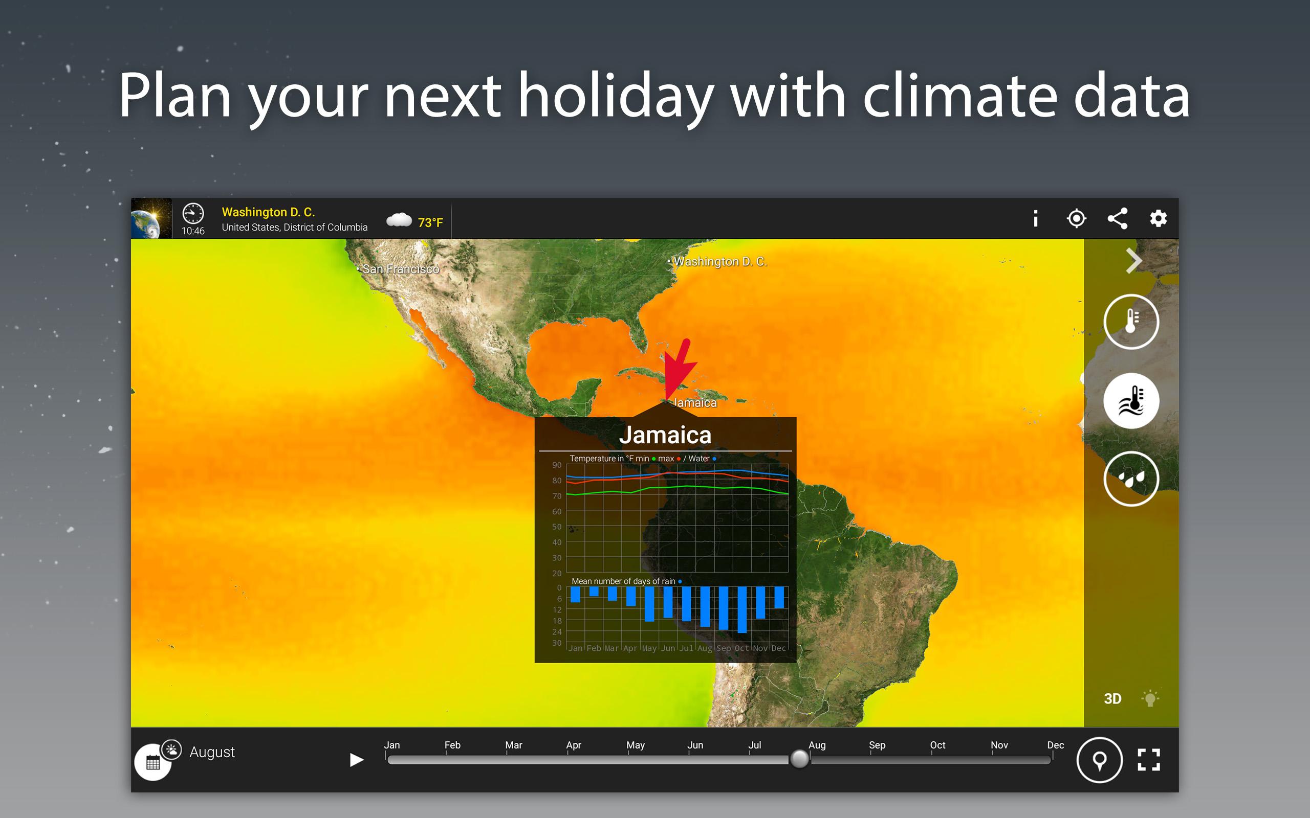 • Switch to climate view and check the weather in a holiday destination at any time of the year